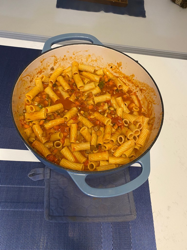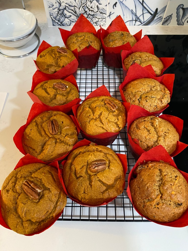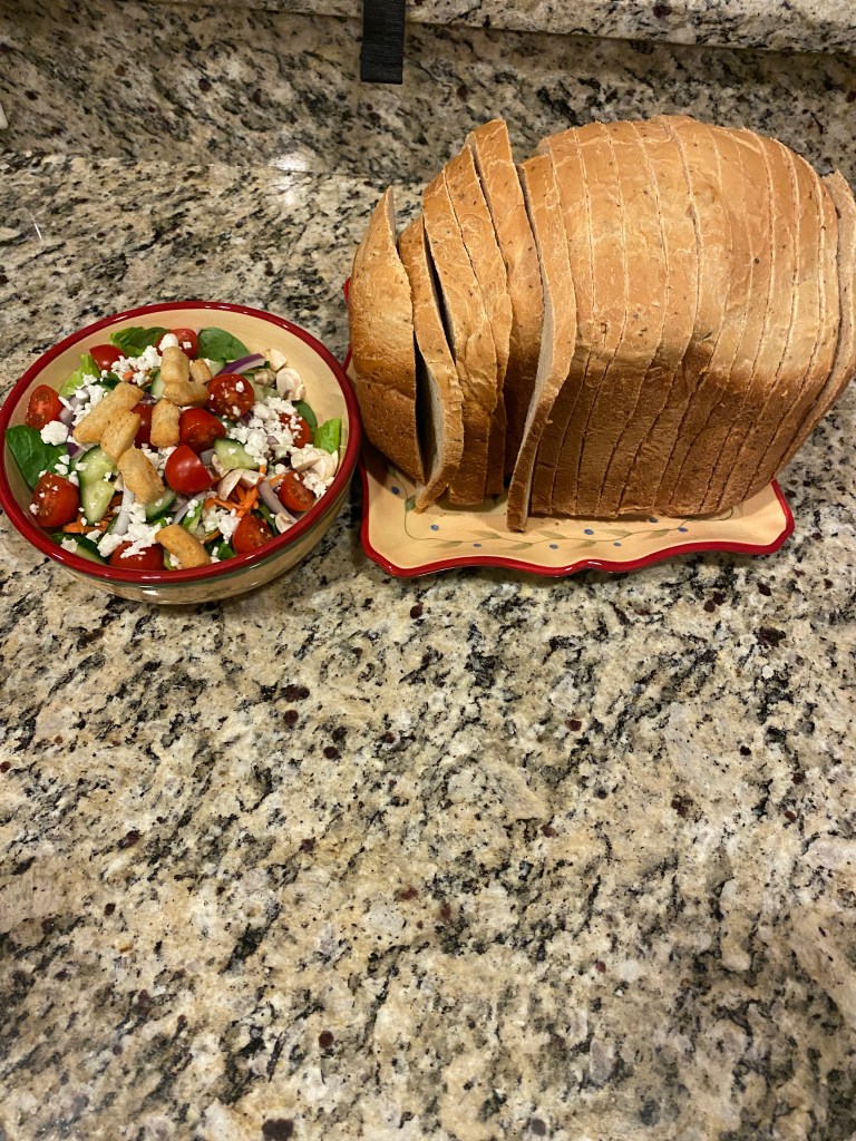 A good mix of reruns and new baking/cooking items from the kitchen. Made gluten-free chocolate with chocolate chunks and chocolate and peanut butter chips muffins for a dear friend who lost her father after a lengthy illness. Made regular versions of the same along with pumpkin with cream cheese and pecan streusel. Had an Octoberfest meal with our daughter and son-in-law that included roasted half chicken, German potato dumplings, sauerkraut and brats, pretzel, and apple strudel (from scratch and phyllo dough). The chicken and pretzel were awesome. Wouldn’t make any changes to the former; only more dough and water with the latter. Recipe left the dough too dry to roll properly and then not enough to roll the dough to a long enough ‘noodle’ to create a properly sized pretzel. The sauerkraut was rather bland but added a variety of spices (ginger, dill, lemon peel, caraway seed, celery seed, fennel, and garlic) and other ingredients (carrots, onions, and apple) in a reprisal with the parentals that had an excellent flavor. The brats should’ve been grilled and the dumplings were meh. They never really firmed up. Maybe put them in an air fryer – defeats intent of a dumpling but they need something. Both strudels were good – the filling needed more brown sugar. All in all – a successful new, special dinner! Other meals included tuna and noodle casserole (no cream of mushroom soup) and pizza night. Fresh made pizza dough and ingredients are always better than store bough pizza. Primary disadvantage is lack of convenience. Even incorporated cheese sticks for the crust and breadsticks! Concluded the baking with a batch of biscuits for the wife while I returned to the parentals abode for a quick trip. Used the wrong recipe and the biscuits were too wet and didn’t rise or brown properly. Definitely owe the Missus a biscuit do-over.