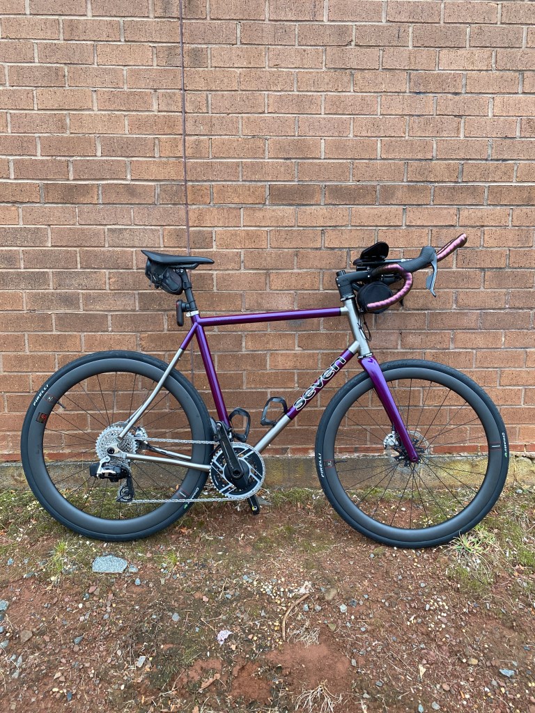 Gravel – new climb up Mount Weather with not enough gearing the required two walking segments and destroying the chainring on a different. Not exactly sure of the cause but thinking a bad shift got the chain caught between the chainrings and while underload, badly warped the smaller ring. Limped back to the start solo via paved surface but the bent ring rubbed against the frame at the bottom bracken enough the Cannondale offered a frame replacement. Not a free bike but around $1200 for a 22 Topstone frame built with the same SRAM Force AXS components. Hopefully it doesn’t take as long as the SuperSix Evo frame replacement.
