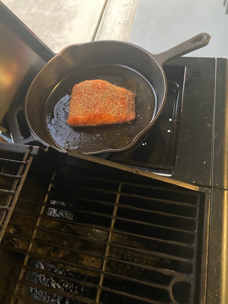 Stopped at a nearby seafood market to pick up some king salmon fillets. Had a discussion earlier in the week with parents about the difference between Atlantic and King which they had never had. Enjoyed some new flavors from the best ice cream shop, ever, Toft’s: banana peanut butter chunk and pumpkin cheesecake. Also made a peanut butter skillet cookie which turned out better than the first one. Actually ate breakfast at a previously unknown restaurant – Wake Up and Waffle. Pretty good stuff. Gathered some fresh fruit (Gala apples and Concord Pears) and nuts (Black Walnuts) from the parent’s property. Wouldn’t quite call it an orchard as two apple and one pear tree don’t quite satisfy the definition. Regardless, they never do anything with the fruit and gives me an excuse to bake!