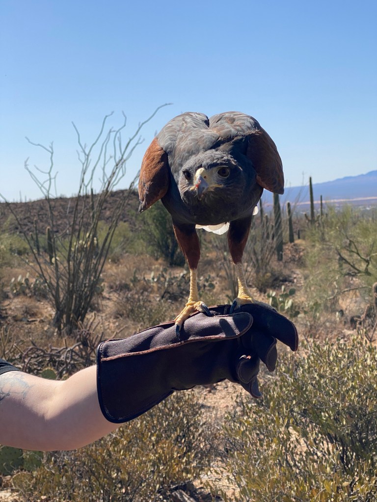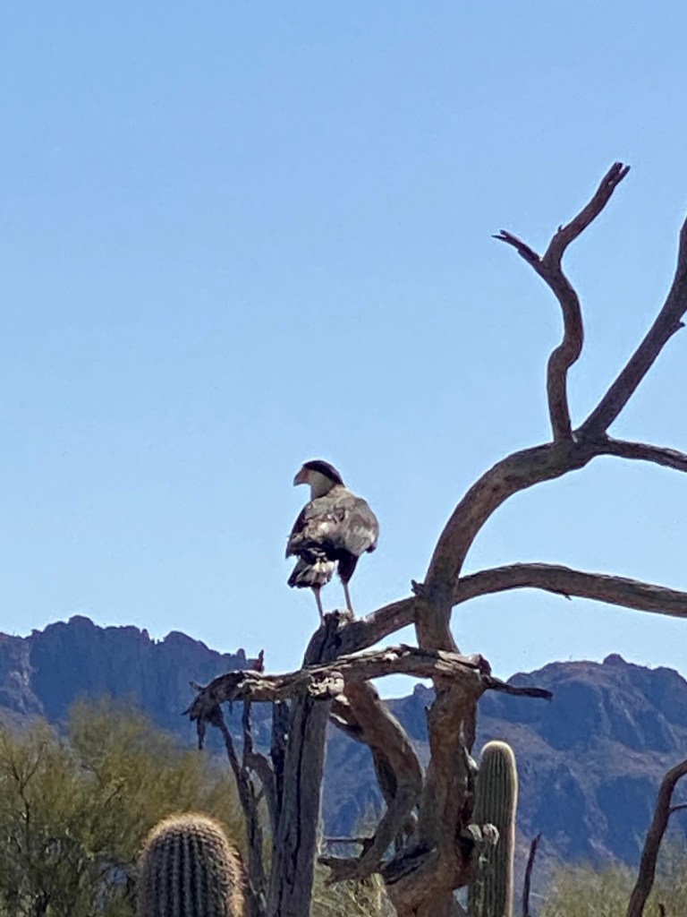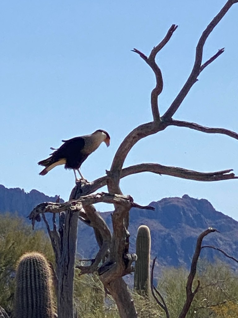 Picked up the next morning by the BA lead guide, Bikepacker, and most of the other tour members: Pirate and his wife, Lawyer, and Professor. The remaining members would meet us at the museum, an unofficial BA guide for this tour, Impending Bride and her fiancé, Mechanic, or join the following day: Professor’s wife, Flutist, and. The other members were far from bicycle tour novices. In fact, they shared numerous stories of past trips and the majority of them seemed to be less than positive experiences albeit in some pretty cool locations. First stop was a couple of hours at the Arizona-Sonora Desert Museum. Walked around the grounds for an hour before heading to the prime attraction: Raptor Free Flight. Several untethered raptors (mostly) were released and flew to rangers’ gloved perch. Birds included Chihuahuan Ravens, Harris Hawk, Crested Caracara, and an owl. Other animals (live and automated) were on display.