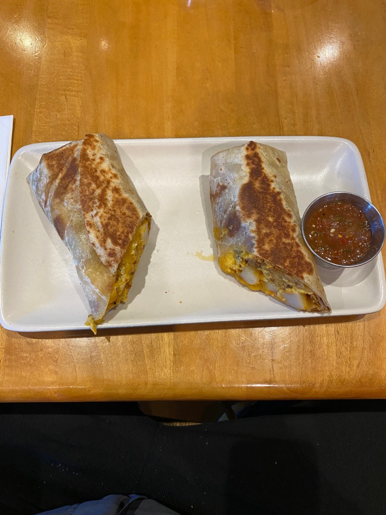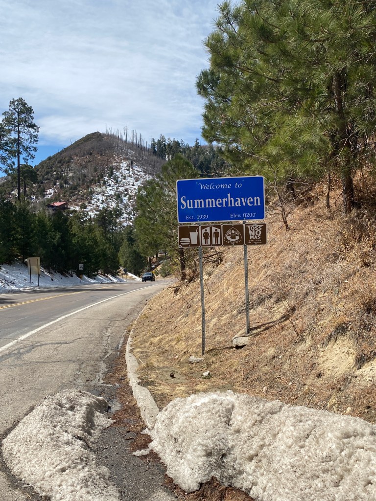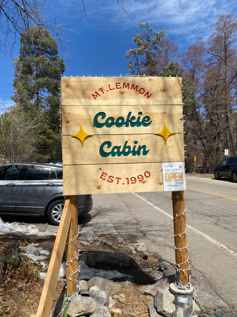 Day 3 start was a repeat of the previous day with breakfast at Le Buzz. Had the buckwheat blueberry pancakes with a muffin. Pancakes were good; muffin was meh. Wind was far more favorable for the ascent up Mount Lemmon compared to the previous day. A modest tailwind for the approach and most of the climb. Thoughts of any Herculean effort up the longest climb in AZ at 25 miles quickly vanished and became an effort of surviving the climb. It certainly isn’t the steepest, but it is relentless with a near constant 4-5% grade except for the ups and downs in the last 4 miles. A preponderance of 60-150 minute indoor Zwift rides is not an ideal training plan for conquering any 3-hour climb. The 7.5 hours of saddle time accumulated in the two days preceding Lemmon didn’t help matters. Not a lot of traffic, vehicular or cycling, on the ascent. A few interesting characteristics of other cyclists tackling the ascent: seemed to be more women than men; my age or older, and; the locals I spoke with complete some of the climb on a weekly or semi-weekly schedule but few go all the way to the summit. The two short climbs at the beginning of the descent are a significant detractor. As with most climbs, the scenery was stunning: saguaro cactus, hoodoo rock formations, cataracts (unfortunately dry). There was significant snow accumulation at the edge of the shoulder and in the tree line above 7000 feet, just beyond Windy Point. Road conditions from Palisades to Summerhaven were noticeably worse than the first 21 miles. Unclear if the higher elevation, 8000 ft, and accompanying weather are factors but that was an unnecessary and unneeded feature. Legs were flat. Spent. Couldn’t maintain the target power numbers. Feeling was reminiscent of Day 2 of first Grand Randonnee; just turning the cranks was uncomfortable. Finally made it to Summerhaven, discarded the extension up to the ski area, and the Cookie Cabin. Ate the BA provided wrap and some of the sampler cookie in the cabin before beginning the descent. Made a brief stop at the van near Windy Point for fluids then down and back to Le Buzz. The descent wasn’t technical and didn’t require much breaking but the wind gusts made for some adrenaline pumping moments. Garmin recorded a new 40K PR on the descent, but it was less than a minute faster than the previous PR on a flat, TT course. Wonder what it would’ve been without the stop at Windy Point? Finished the crumbled cookie while waiting for van to return.