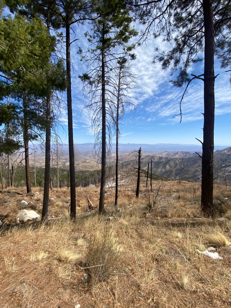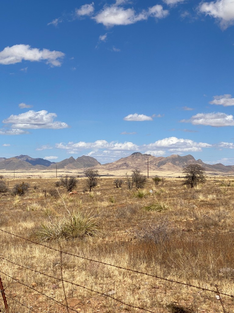 Day 4 began with breakfast at Loews followed by a 90-minute van ride to Kartchner Caverns. The tour of the young State Park, discovered in 1974 and opened in 2003 was impressive. Unfortunately no pictures allowed as any item that could be dropped, such as a cell phone, hat, gum, etc. were greatly frowned upon. After another salad-based, BA provided lunch (no complaints!), back in the van for an hour to reach our accommodations for the last two nights, Casa de San Pedro. A quaint B&B that offered freshly prepared meals and always had homemade cookies and pies available. Good thing cycling took up most of the time! Went for a short spin to stretch the legs after settling into the room. Legs were still flat but slightly better. Inclines still mandated easier gearing than usual to reach the top. Eastbound Route 92 is a terrible stretch of road; an abundance of expansion cracks, too many of them filled making jarring bumps! Not much in the town of Palmanes besides a Dollar General store and a high school. Covered a bit of gravel (and sand) on the return trip. This area of AZ is dominated by land features referred to as Sky Islands; isolated mountain ranges that rise from the surrounding desert and grassland.