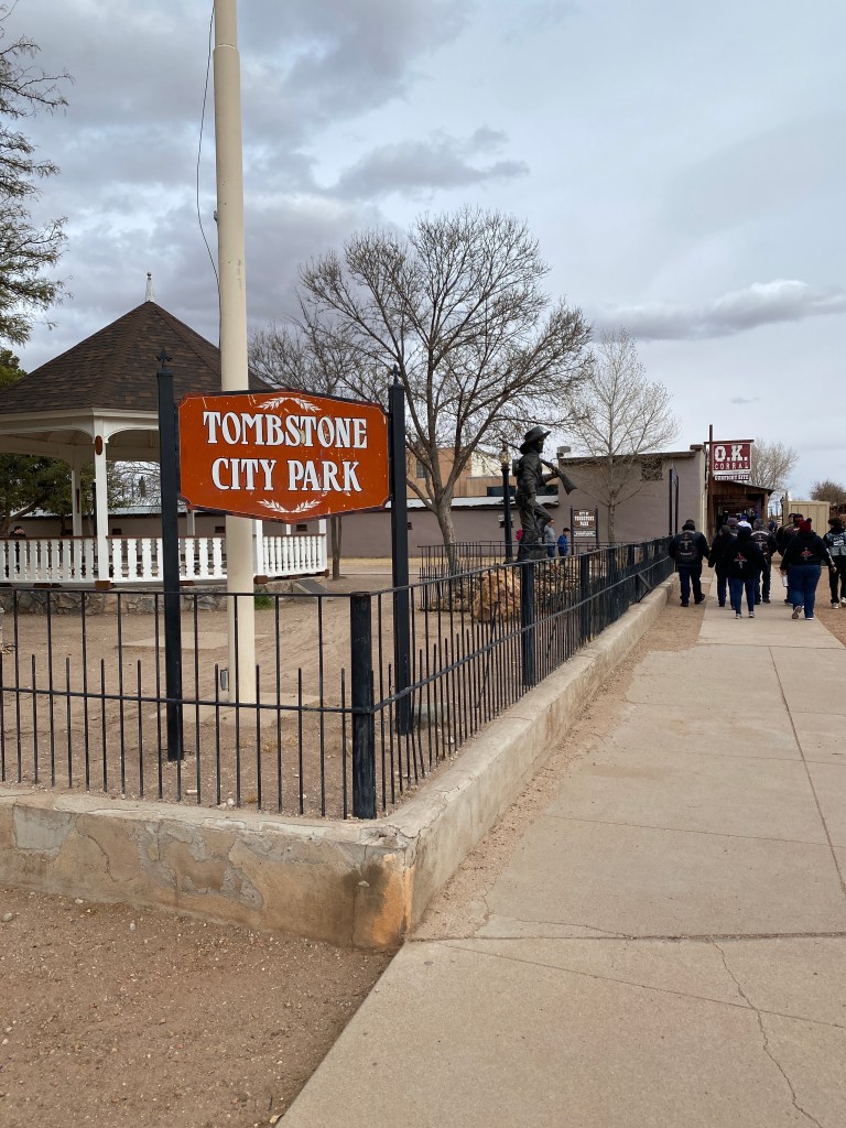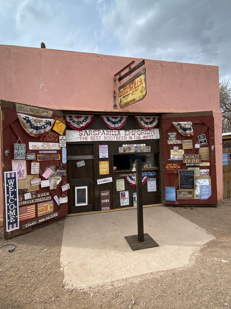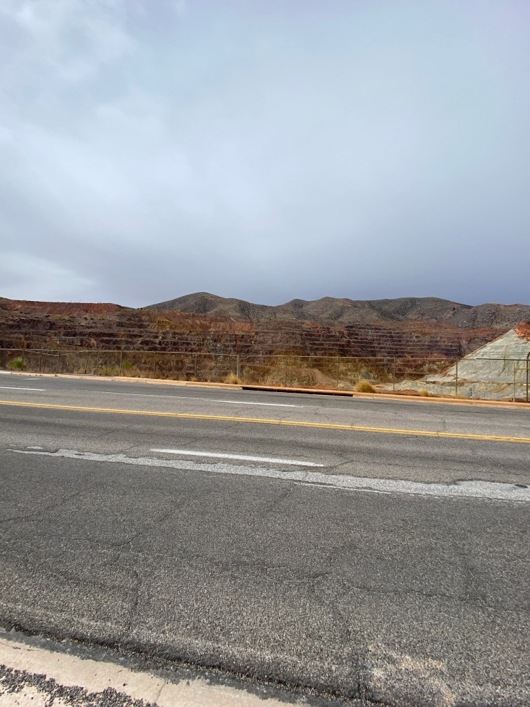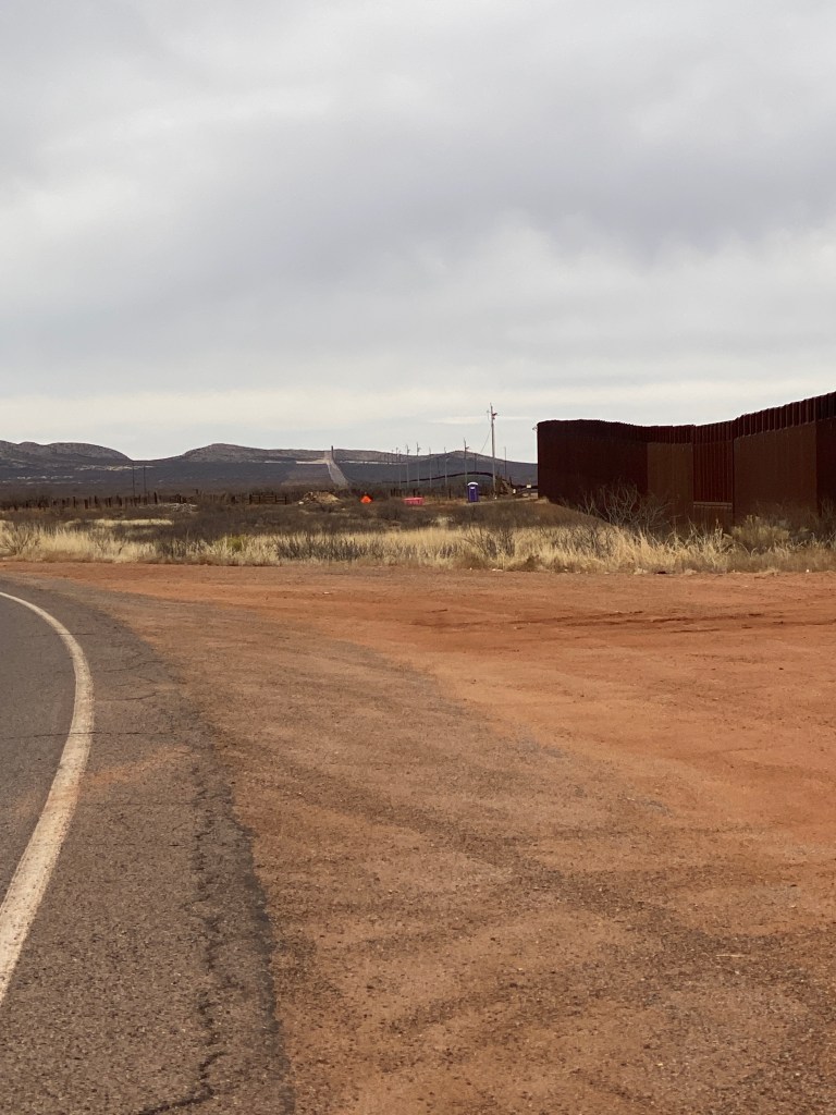 Day 6 and final day of AZ Sonora began with observing the lunar eclipse, red moon, then another great breakfast. Bags were packed and taken out to the van. So far the weather was not quite disappointing but certainly surprising. Expected warmer temperatures but not complaining as heat wasn’t a factor at all. Due to the higher altitudes of most day’s rides, the sun’s intensity was easily overlooked. As a precaution, wore arm skin sleeves every day but still managed sunburn on a few spots: left wrist on both sides of my watch; left ear, and; a thin line on both thighs just below the bottom of bib shorts. The last day was significantly cooler and necessitated waiving my minimum, outdoor cycling temperature threshold of 40°. Was 39 degrees at start which meant jacket, full fingered gloves, and knee warmers. Today’s ride started from the B&B, through Naco, and ended in Bisbee (population of just under 5000), a former copper mining town. Had to follow a detour just prior to entering Naco but it quickly returned to the established route. Regardless of personal views on immigration, The Wall is an imposing site. The border wall system is part of over 180 miles of panels intended to provide “persistent impedance and denial to illegal cross-border activity.” The lead in to and through Bisbee was uphill for about 8 miles. It wasn’t steep but the climb was noticeable. The city had changed – more people, open businesses, and color – since my last visit over 15 years ago. Finished the ride then had to wait about 20 minutes for the van to arrive. It was a long, cold wait. Didn’t want to enter any of the businesses with the bike remaining outside. Once it did arrive, changed out of cycling clothes into warmer, street clothes, then off to find lunch. Stopped in Tombstone for 30 minutes while Bikepacker refueled the van. Had a sarsaparilla and purchased a belt since I failed to pack one!