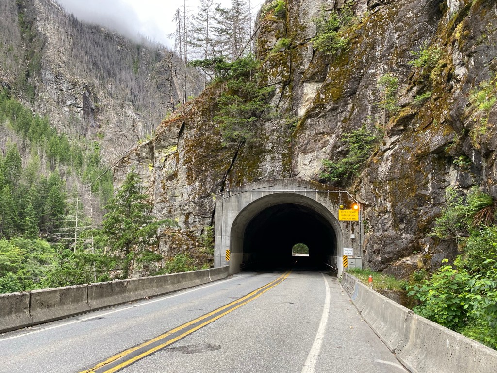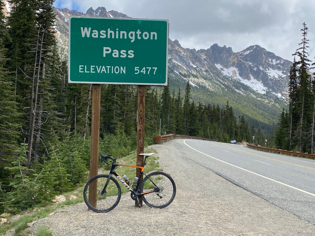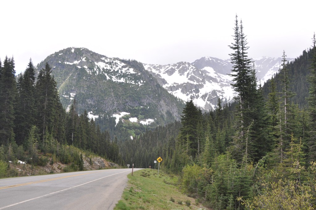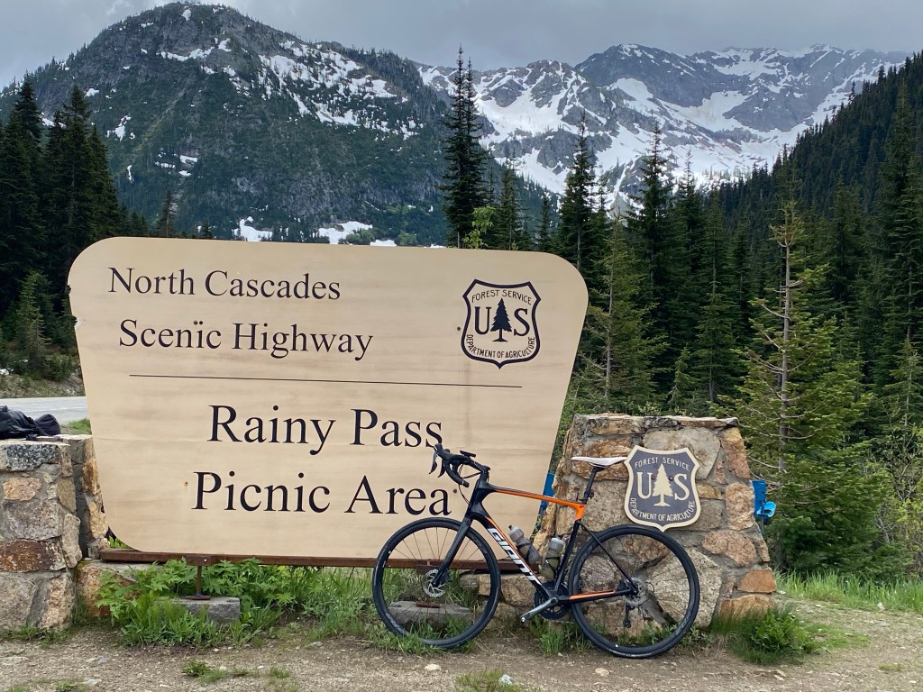 The forecast said wet – all day wet. Figured the chances of one of the tour days being a foul weather one was likely but wasn’t looking forward to it. Woke up at 0600 to wet pavement and a lingering heavy mist, not quite a sprinkle. However, while eating a continental breakfast in the hotel parking lot and getting ready for the day’s ride, the precipitation stopped and the pavement started to dry. Seemed like the Cycling Gods had a different plan than the weather prognosticators. The road is rather flat for the first 15 miles or so as the route ultimately passes through the North Cascades National Park and Okanogan National Forest. The elevation rises gradually as the road parallels the Skagit River. Most of the next 40 miles are spent pedaling uphill. Yes, there are a few, short descents but the bulk of the stretch is uphill. Rainy Pass is first at mile 51+ in the ride at an elevation 4855 ft. Along the way, the picturesque cascades are too numerous to count and stopping to take pictures would make the day unbearably longer. Suffice it to say there are many and all are photo-worthy. Lunch (packaged southwestern salad) was at the Rainy Pass picnic area. And it did rain. Thankfully we were able to erect an ‘instant canopy’ before it poured. The rain only lasted about 10-15 minus but also lowered the temperature to the upper 40’s. There was also snow on the ground at Rainy Pass. After lunch and still shivering again, the cycling resumes with a frigid 2500m descent followed by a 3-mile climb to Washington Pass at 5477 ft of elevation, the highest point on North Cascades Highway. The mountains surrounding Washington Pass are often referred to as The American Alps due to its resemblance to the European Alps. The next nearly 20-miles is a no brakes required descent into Mazama, an unincorporated community with nearly the same population as Marblemount. Totals for today are 75.3 miles, 6772 ft of climbing, and total moving time of 4:48.