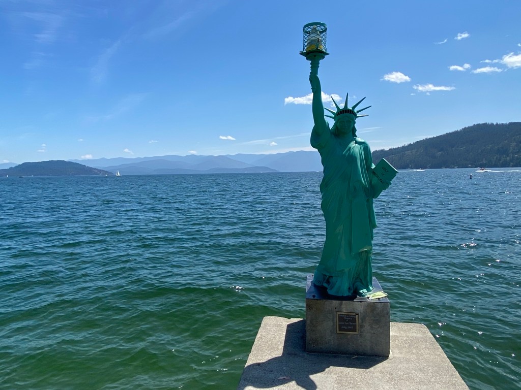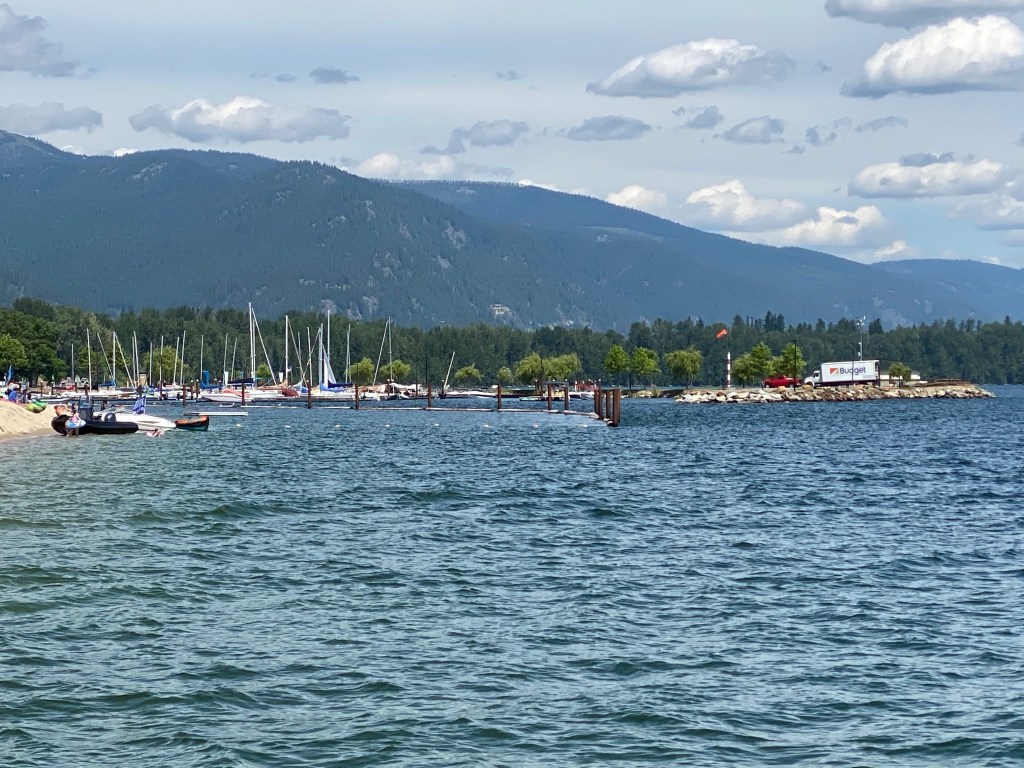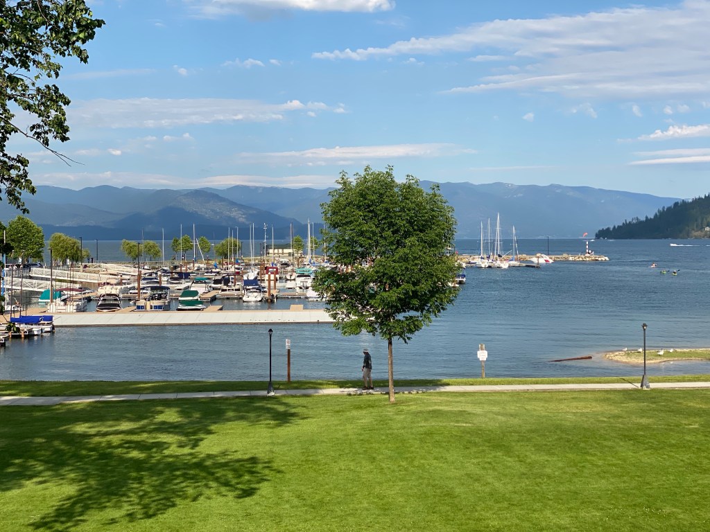 Finally, at the 122.8 mark, a left turn on the bike path (the old bridge) and a 2-mile crossing of Lake Pend Oreille followed by a couple more turns and today’s ride ends at the Edgewater Resort in Sandpoint, ID.