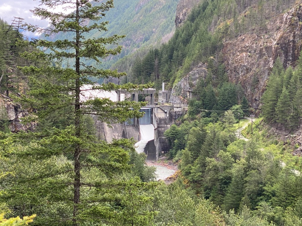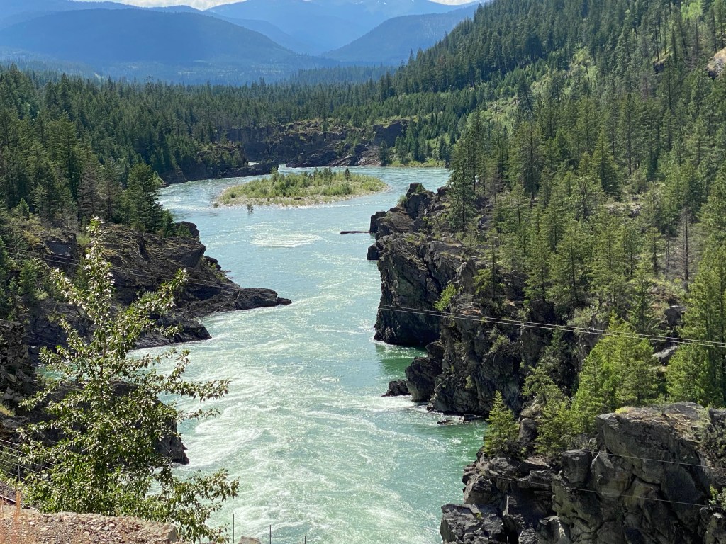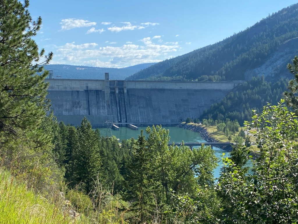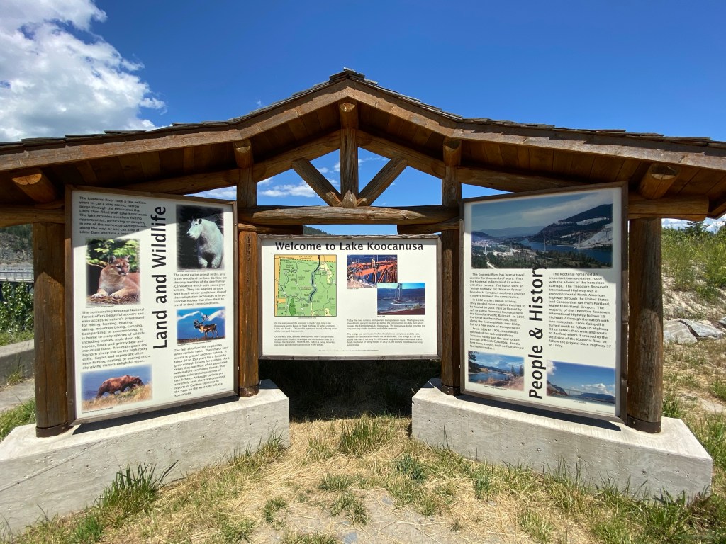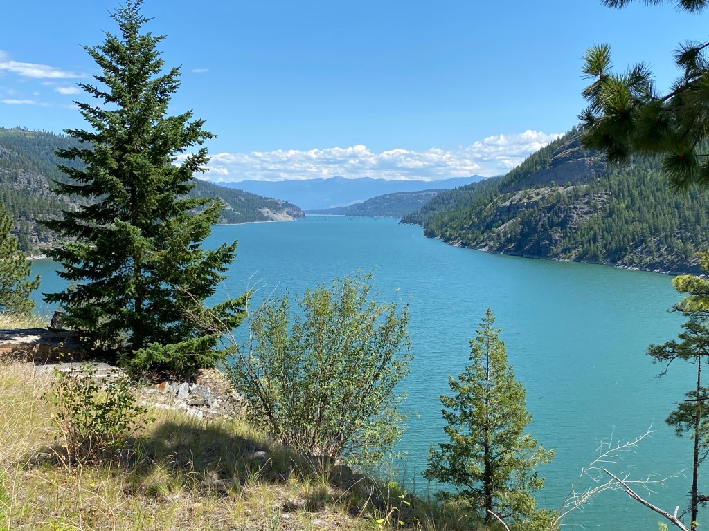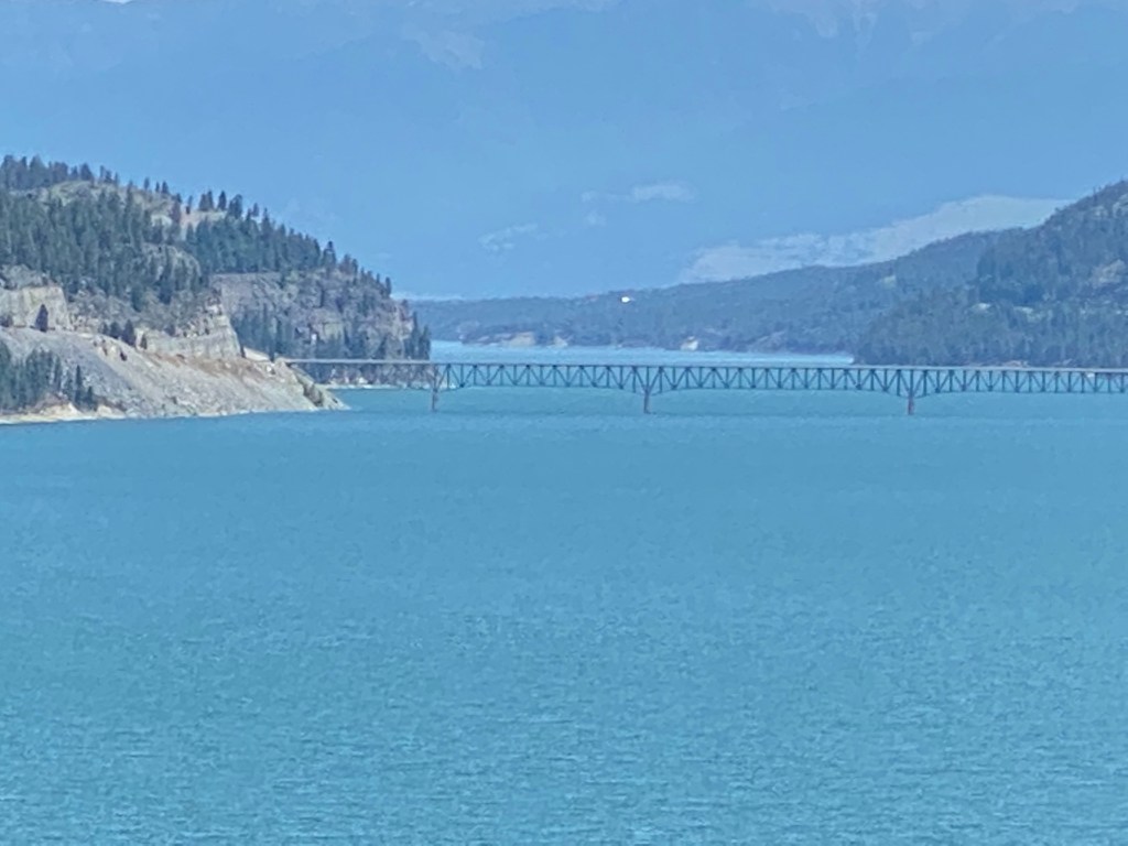 After breakfast the route heads east through Libby connecting with MT-37 S. This is a narrow two-lane road with minimal traffic, essentially a wide bike lane through the Kootenai National Forest. Second bear sighting of the trip but further away than the first one and no picture. Crossing the Kootenai River about 15 miles outside of Libby, the next 45 miles are on a forest development road (FDR no. 228) also called a National Forest Scenic Byway. The two-lane road is closed in the winter and stays on the western side of the river and Lake Koocanusa (created by the dam). The 2.5-mile climb to Libby Dam begins around the 17.5-mile mark and averages 4.1% with a max grade of 9%. The 422-ft dam ended the seasonal flooding caused by the Kootenai River and created the 90-mile long Lake Koocanusa which extends well into Canada. The name was the winning entry of a naming contest derived from the first 3 letters of KOOtenai River, CANada, and USA. After the obligatory stop at the dam for pictures, the road still climbs for a bit then becomes a series of rollers with a few that graduated to actual climbs. The sluggishness of the legs is surprising based upon yesterday. Didn’t intend to push the pace then but apparently did as they want to part of any sustained effort. Lots of coasting and easy pedaling today. Passed by only a single vehicle going north on the FDR and that was on the climb to the dam. Saw maybe a dozen vehicles headed south. Lunch is at a cutout overlooking the Koocanusa bridge at the 60-mile mark. A guide prepared salad and fruit are the main items on the menu today.