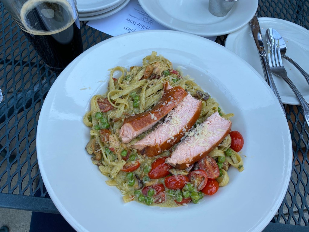 Lodging is at the Grouse Mountain Lodge with dinner at the in-lodge Logan’s Bar and Grill. Dinner was Pesto Fettuccini with smoked salmon.