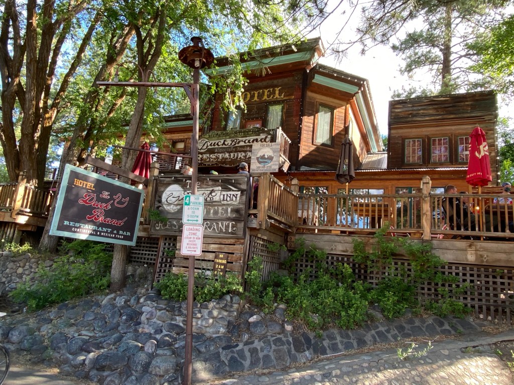 Waited for the support van then loaded up and headed back to have lunch at Lake McDonald Lodge’s Jammer Joe’s Grill and Pizzeria: elk burger, fries, and 2 ski brewski. Burger was good but do be honest, couldn’t tell the difference between ground elk and ground beef. Departed Glacier National Park in the support van and returned to Whitefish. Crashed hard (slept, not vehicular accident) on the drive. Guides had secured use of a room at the Stumptown Inn (couldn’t find Taylorstown) so everyone could shower. Rearranged luggage situation to have a day bag for the train ride as the bulk of our stuff would return via the van and not the train. Bid farewell to one of the guides who had an 8+ hour drive back to Seattle with the bikes, gear, and luggage. The rest of us walked around downtown Whitefish. Quaint little town that I’m sure is economically suffering from the decline in tourism due to CV-19. Second bike shop actually had a full kit, sans socks, promoting the shop, which I purchased. Every other shop visited during the last 8 days only had jerseys and generic shorts – not even bibs. Had time for a beer, or two, at a local pub before dinner at Pescado Blanco (nice play on words) and had bison enchiladas with Banana Fosters for dessert.