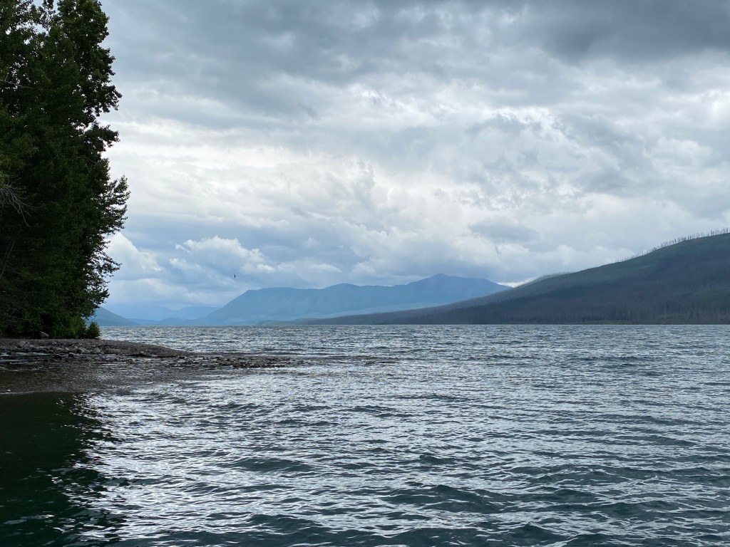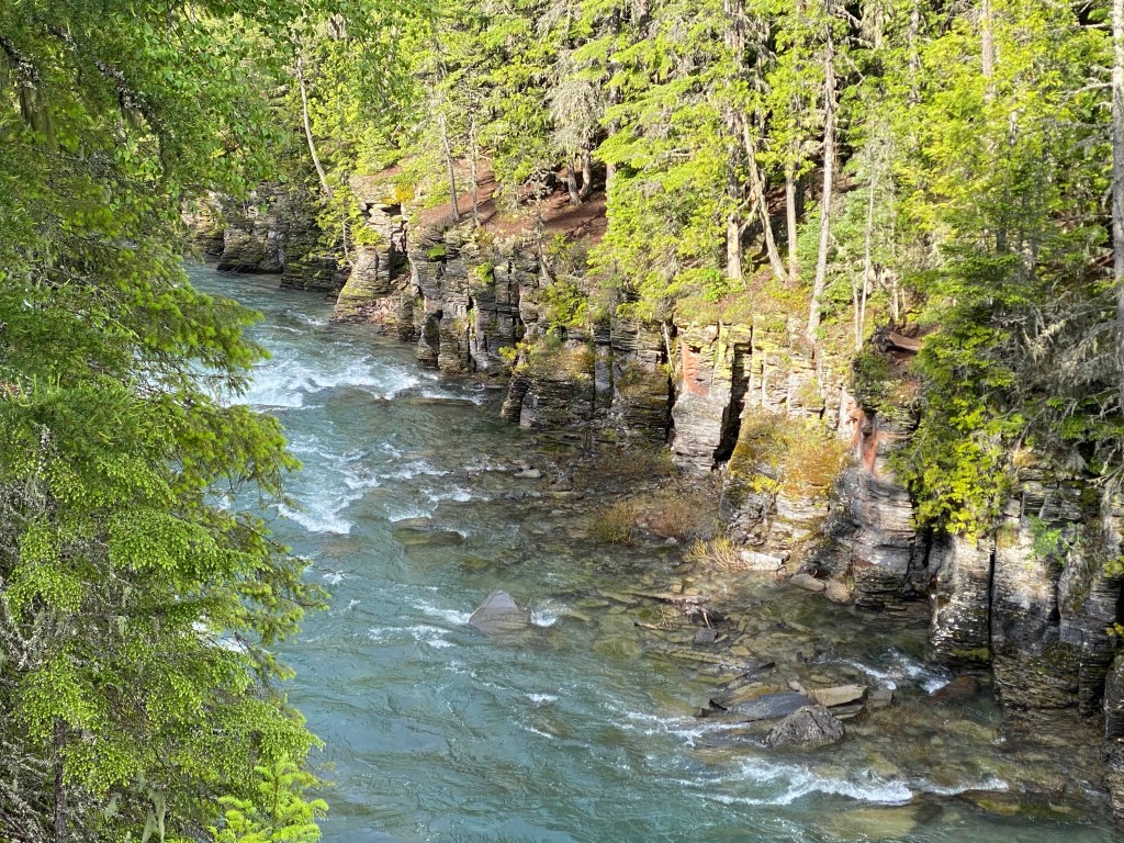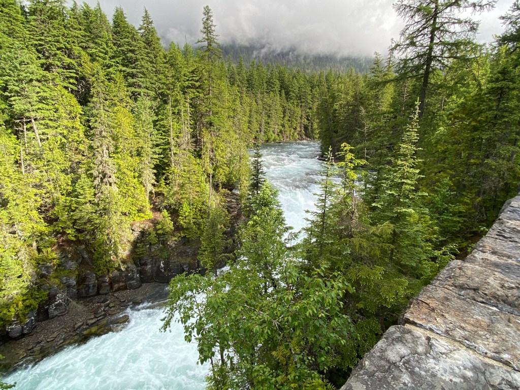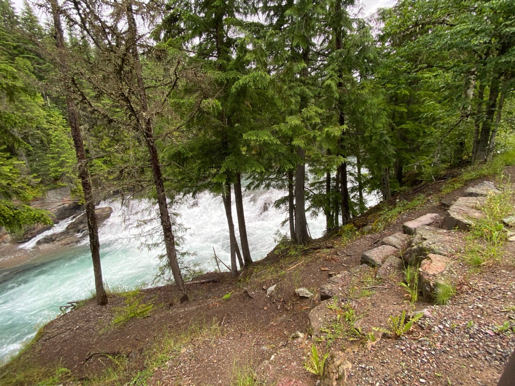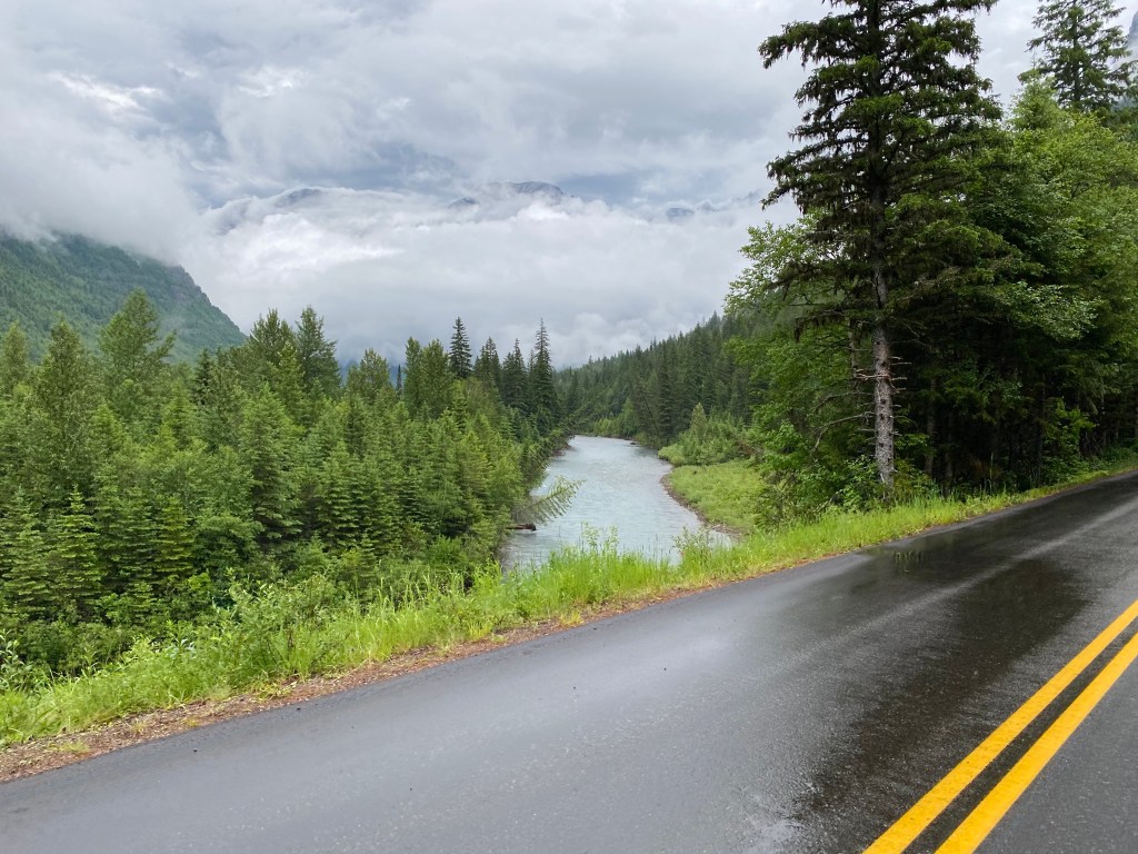 Inauspicious start to the final cycling day of the tour. Forecast called for rain and it was correct. Group called another audible and adjusted the schedule. Ordered and picked up the breakfast-to-go then rode in the support van to Apgar Village. If light rain continued, plan was to ride as far as possible. Weather forecast called for a mid-morning break but then nasty weather around 1 pm. Heard from other guests at the Lodge that the road was closed to motor vehicle traffic at Avalanche Trail but didn’t know about restrictions for cyclists. Fortunately, the cycling gods were watching and stopped the rain before the van made it to Glacier.