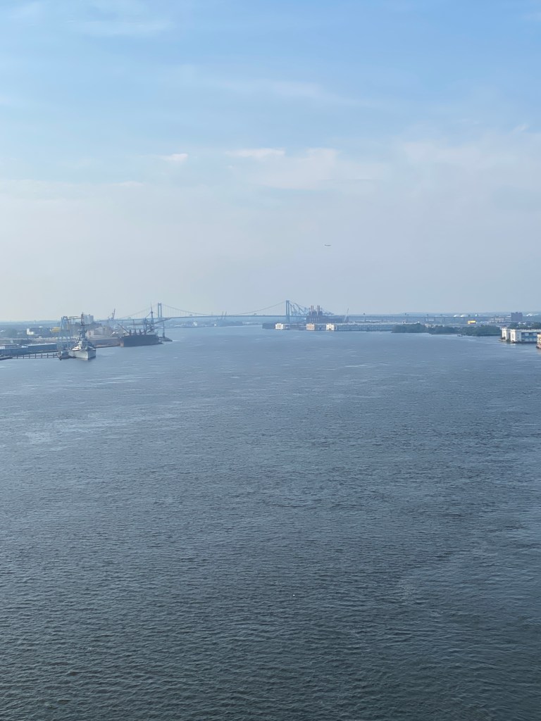 After breakfast and filling all water bottles, drove to the route starting point and began pedaling at the roll time goal of 0715. Initial miles were through heavy industrial and petroleum production factories – not very scenic but roads were ok. Went past the backside of the airport along the Delaware River then nice trails along the Schuylkill River and then entered Philly proper. Surprised by amount of bike lanes through Philly and passed by numerous city cyclist riding the gamut of bikes: road, hybrid, mountain, fixed gear. Many ignored stop signs and even red lights – too many of those. Felt weird when the bike lanes were on the left side of a one-way street. Navigation went pretty smoothly through the city. Zoomed in the Garmin GPS unit as the route was tricky is spot but eventually up and over the Ben Franklin bridge into NJ for a few miles and worse stretch of pavement on the entire ride. Seems like there could’ve been a much better way to add a few miles on an out-and-back-extension. Likely that stretch of road wasn’t so bad when the route was created. Only the walk/bike lane on the south side of the bridge was open but the route incorporated both sides. Experienced a bit of frustration attempting to re-connect with the route and added about 4 miles of back and forth but nearly 45 minutes until finally found the right path. Garmin return function kept wanting to send me back over the bridge into NJ. Finally selected return the quickest way and that connected to the return route. Once back on the purple lines (Garmin only – unfortunately no markings on the road or bike path), switched back to the actual Perm route as the quickest way back actually shaved off 4-5 miles. The temps did rise as the morning progressed but didn’t reach oppressive. Optimally, 4 bottles were sufficient with all the extra time spent in the sun going back and forth in Philly but made it stretch. Under a bit of a time crunch to return to the hotel, shower, pack, load up and check out of the hotel even with an hour extra for late checkout. Completely out of the room and loaded up by 1:15.