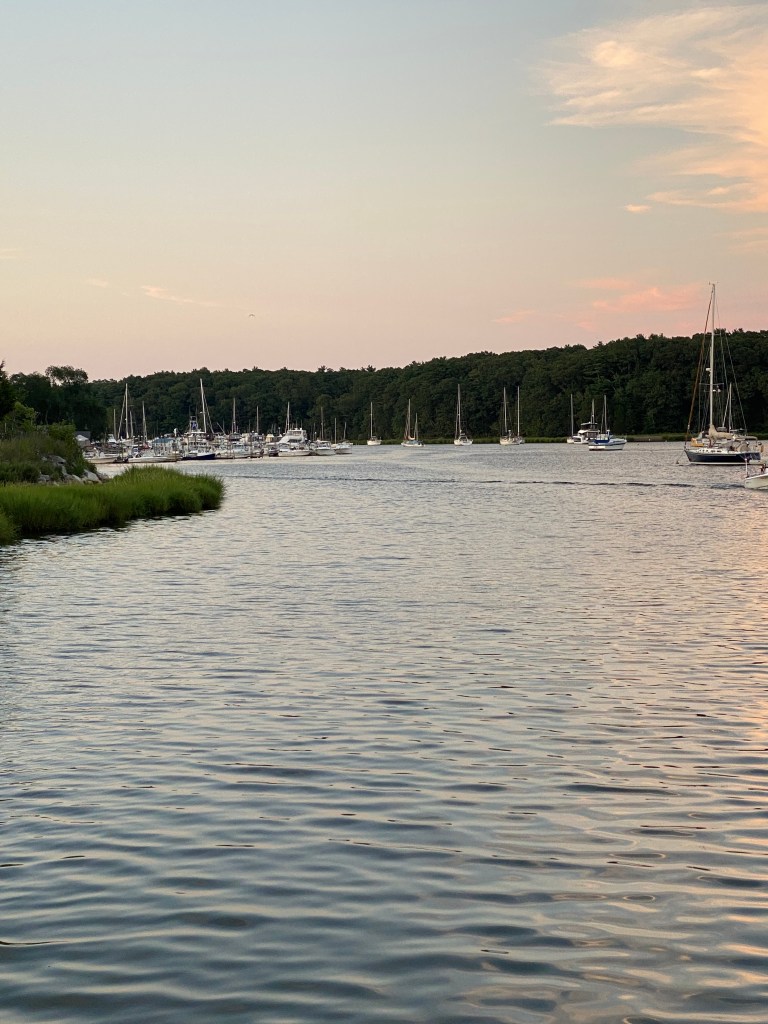Had a short drive back to the hotel, the drive to the next start point was the following morning. Asked the desk clerk for restaurant recommendations, seafood of course. What else is supposed to be had in Maine. He provided three with his personal preference. Looked up all 3 online and based on the menu offerings, agreed with his preferred establishment. Unfortunately, they didn’t have any openings for a party of one but did have an outside deck that was first come, first serve. Rolled the dice and drove to Mabel’s Lobster Claw in Kennebunkport. Hostess said it would be 30 minutes so planned on taking a walk back towards the downtown area. Made it 10 minutes down the road before receiving a text stating a table was available and would be held for 15 minutes. Made it back in time and had the best meal of the trip and likely one of the top 5 ever: house salad, mussel bread, and baked, stuffed lobster. Walked a bit more after dinner for a total of 3.15 miles along the Kennebunkport River to the mouth where it flows into the Atlantic. This would be the final ocean view of the Adventure.