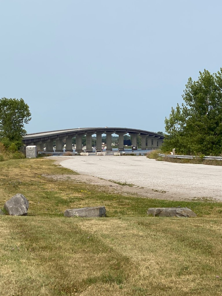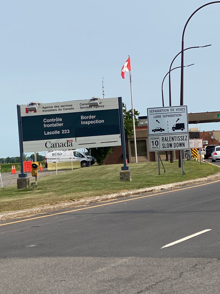 Later rise for made to order breakfast – mushroom, tomato, and spinach omelet, 2 pancakes, bowl of corn flakes, banana, blueberry yogurt and juice. Then walked just over 4 miles, mostly in the Vieux-Port area. Previously used Garmin’s reverse route feature and saved the route. Once again, the start point was not the hotel. Using the route, wrote down directions from the hotel to intersect the route at Jacque Cartier Bridge. Departed about 10:45 and the directions were accurate but they took me beneath the bridge. Backtracked once and connected with the route. Smooth sailing out of Montréal. Crazy gates on bridge to reduce speed but maneuvering through with a rack on the bike felt cumbersome. Once on the dedicated bike path of Route Vert 1, took advantage of one of the permanently mounted bike pumps to make sure air pressure remained at 75 PSI. Again, the path was busy but not congested. A higher percentage of younger riders today but still seemed proportionally higher for older cyclists. Had to stop at a bridge along Chambly Canal that rotated out of the way to allow 6-7 boats to pass. Interesting design alternative to drawbridge. Series of fully functioning locks along the canal. Actually passed a group of riders just before transition of Route 2 from dedicated bike lane to normal road. Canadian and US Customs checks are separated by 1.3 K. Seems weird but no problems coming back into US. The car was safe and sound where parked the day before.