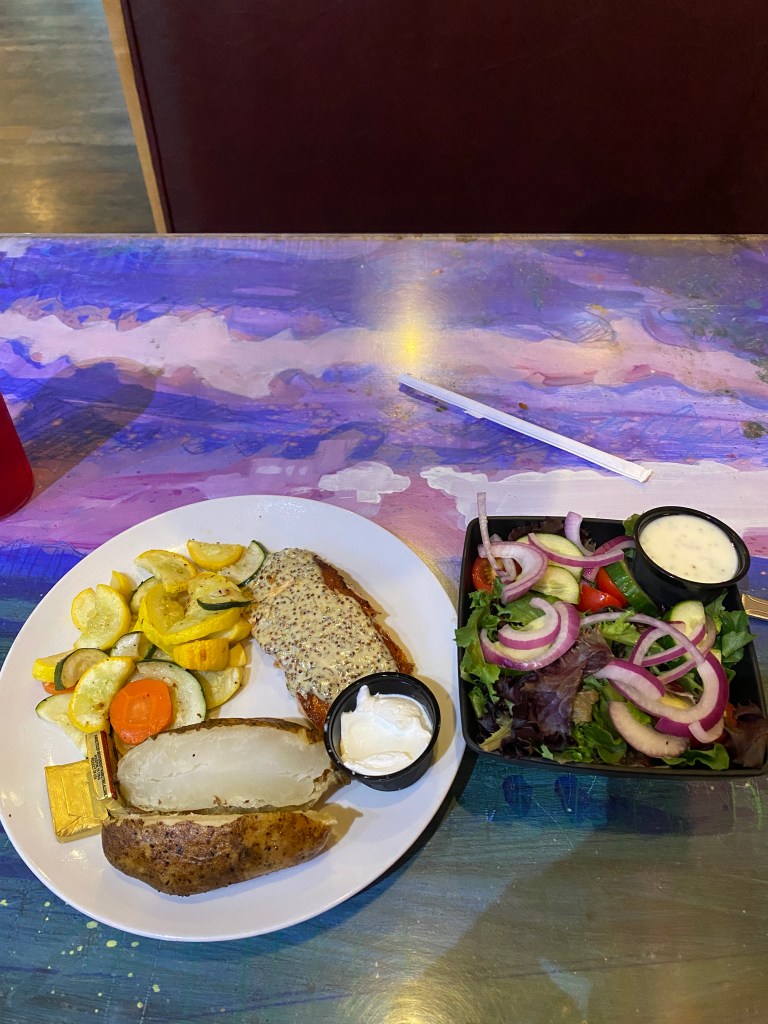 Ate the 2 bananas, apple, and one Uncrustable that were in the cooler. Removed the rack and put Synful on the vehicle rack and prepared to drive back to St Albans. Spotty internet meant Apple Maps wouldn’t load which created a small navigational dilemma. Headed south until a stronger signal was detected, loaded in the hotel address and concluded the Canadian Extension of the Rando Adventure. Final meal was at Twiggs American Gastropub and ordered Crab Rangoon (delicious) for an appetizer, house salad (bigger than expected), seared salmon (thin piece, underwhelming) and Famous Twiggie, made-to-order cookie with ice cream (cookie was overdone around the edges). Ended the trip with the least liked meal. Disappointing but can’t have great meals every time.