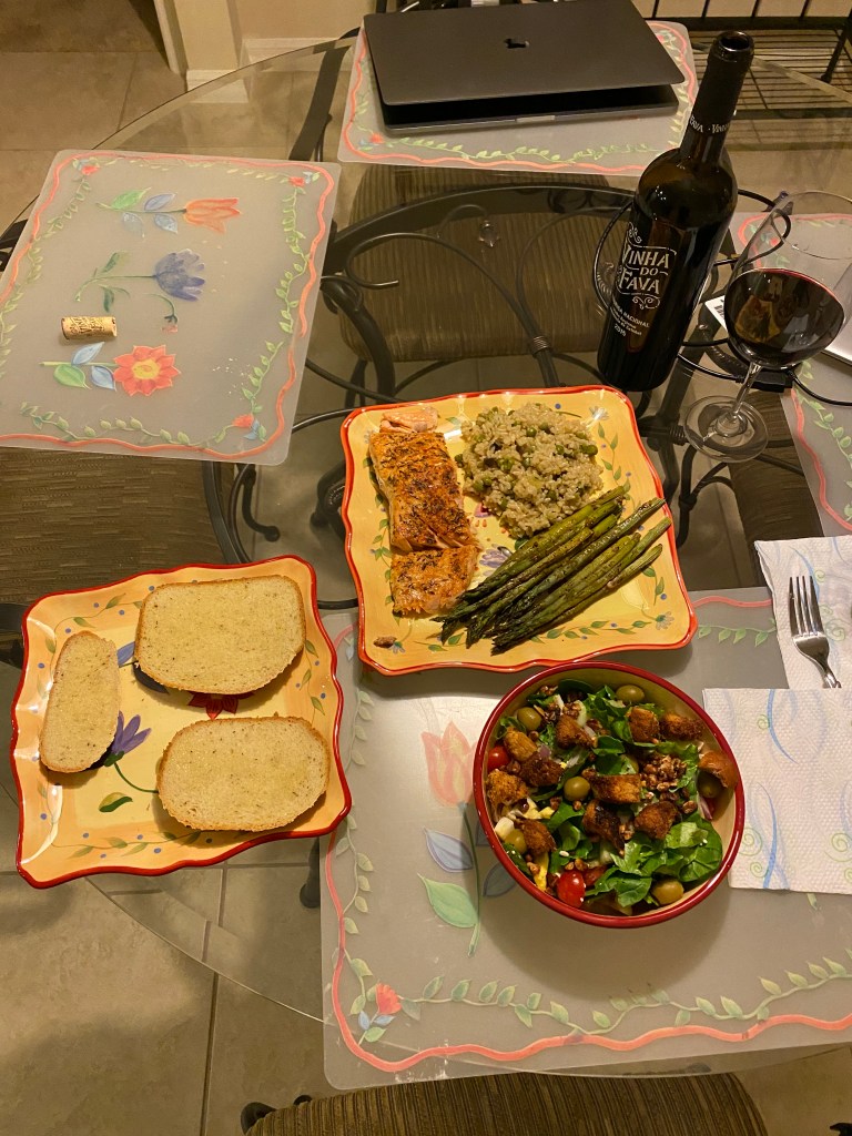 In addition to the 20-minute walks, short drives are allowed as local laws are 20-40 vision in at least one eye. Depth perception is nonexistent and adds a little challenge to routine tasks. Still able to maneuver around the kitchen and even added a few new items to the menu: salmon Nicoise with orzo and red velvet cake with cream cheese frosting. No, they were not part of the same meal.