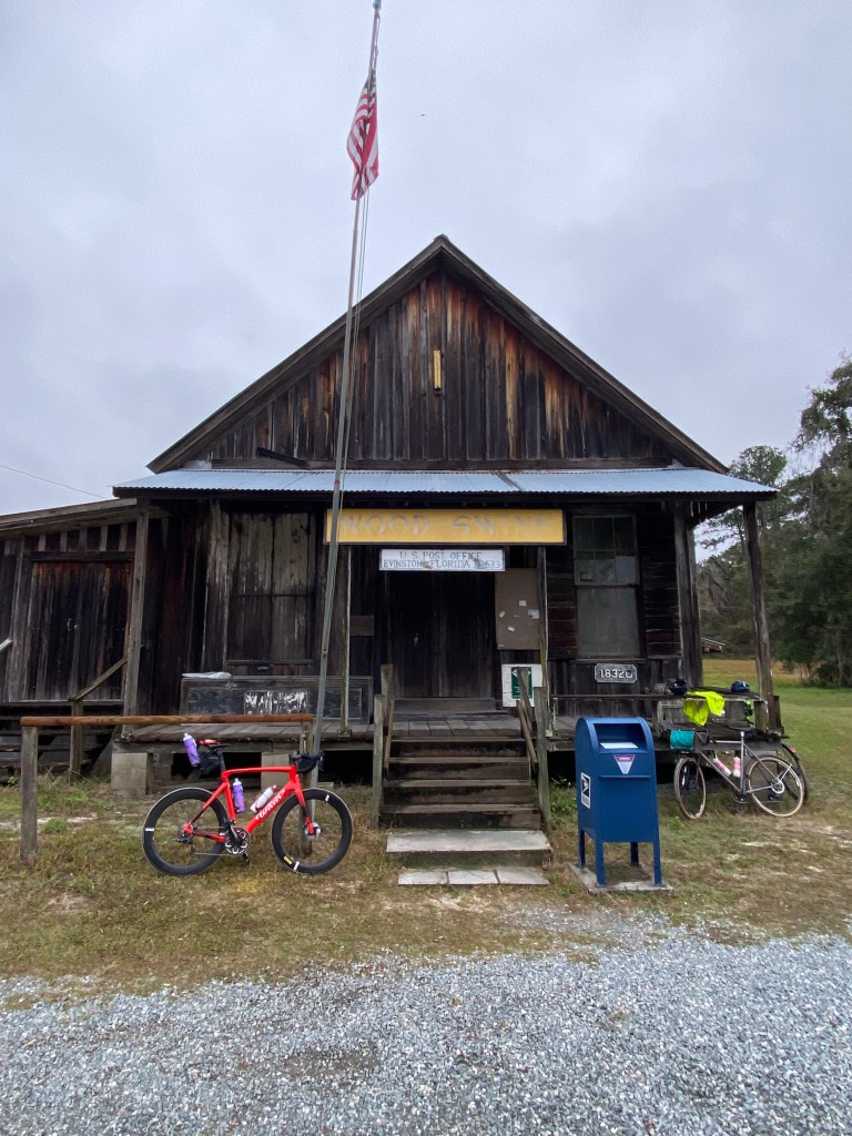 Back to FL for another 300K Brevet and 100-mile Dirty Pecan gravel (more dirt and sand really) ride. Returned to Gainesville for the Hart Springs 300K. Stayed at the Quality Inn which is very much a misnomer as it was actually anything but. Somehow the reservation was for a smoking room – was told the hotel was sold out and no ability to change. However, upon check-in, was able to switch to a nonsmoking room. Apparently there were cancellations but the parking lot did not seem crowded. A sign in the lobby informed patrons that the hotel had stopped serving breakfast in January 2022. Really? Made it through 2 years of the pandemic but then stopped? Strange. Start point was a small strip mall next door but no parking allowed in the lot. Recognized a few familiar faces as everyone gathered for the 0500 departure. No Recumbant Man today as he was off competing in the 12-hours of Sebring (how far can you ride in 12 hours).