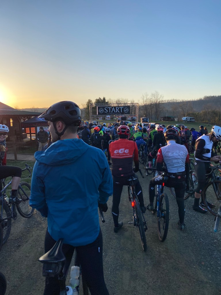 The week after that was a change of pace: the Appalachian Journey (AJ) Duo-Long Doggie Gravel Race. As the name implies, it’s a 2-person race, mostly on gravel roads, down in Floyd, VA. Data file from ridewithgps was grossly inaccurate both in terms of percentage of gravel (20% vs ~80%) and elevation (9K vs 13K). Teamed with another rider from the local bike club and spent the weekend in Floyd. Made the 4-hour drive down on Friday to be ready for the 0700 start. Teammates were supposed to stay within 15 minutes of each other but the organizers wouldn’t know until the finish line. It was a little chilly to start, 39°, but no wind. The climbing started early and continued all day – crossed the eastern continental divide twice as well as the Blue Ridge Parkway. Initially headed east, into the rising sun which reduced visibility. Gravel riding, for me, is mentally exhausting, as well as physically demanding. The technical (and sketchy in several places) descents, steep and rutted ascents required constant vigilance to select a manageable line to stay upright. I failed once early on and went down softly on a right-hand turn going from pavement to gravel. Recovered quickly and didn’t lose too much time. A couple times later, attention waned on climbs and drifted too far to either side of the road and forced to clip out to prevent unintended entrance to the surrounding forest. Pitch was too steep one of the times and had to walk uphill a bit until able to remount and resume pedaling. The course had more pitches exceeding 20% in a single ride than ever experienced. If Roam gps data was accurate, there were more than a couple stretches greater than 30%. Things were going well until just before rest stop #2 (we didn’t stop at the first one) at the 34-mile mark. Teammate got a stick stuck in the chain and snapped it (the chain, not the stick). While he tried to fix, I proceeded to the rest stop to inquire about mechanical assistance. Sorry, none to be had but they were fixing pancakes. Naturally had to try one – quite tasty! Extremely fortunate that a couple stopped, had a quick link, and was nice enough to give it to my teammate. Easily lost 15-20 minutes for the repair but we weren’t in it to win. Must say the food offerings were not just the typical cycling event fare but each one we stopped at had unique offerings. Even had a thimble-sized shot of moonshine and baked potato wedge upon cresting one of the climbs. Around the 80-mile mark there was a 50-ft river crossing where water was above bottom bracket height. Too murky and wide to carry the bike across so we stayed to the left and made it across. Absolutely despise, wet, cold feet. First time using a camelback for fluid replacement. Much easier to drink on the go without worrying about grabbing a bottle. Also didn’t have to worry about launching any rumbling over bumpy terrain. There were many strong female riders – a couple were much better at descending. Had spectacular views up, over and around the Blue Ridge Mountains. We finished the 110 miles and 13,582 ft of elevation in 9:56 (8:45 moving time), 12.6 mph avg and 5986 kJ. We finished 6th in the over 40 category. Not too bad. It was probably the most challenging cycling event to date. The route had everything – long climbs, short steep pitches, 40+ mph descents, smooth, sketchy gravel, frozen puddles, a river crossing, and great rest stop offerings. The soup, cornbread, cookie and beer at the end were pretty good too. It’s definitely an event to keep on the calendar.