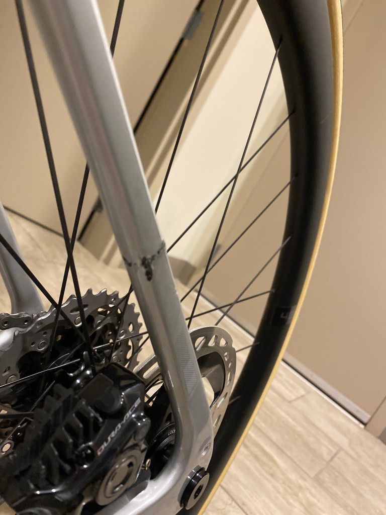 Prepping for Day 2 ride the morning of and discovered a large gauge staple in the rear tire. Air escaped like an unheld balloon upon removal without any sign of sealant coming to the surface of the tire. Reinforced the notion of having a back-up set of wheels – just more expensive now with SRAM Red and Shimano Dura-Ace configured bikes – for just this situation. Did order Silca’s sealant with FIBERFOAM and Sealant Replenisher which supposedly seals punctures up to 7mm wide. Wouldn’t be making this ride either – able to change tires without any problems but unable to seat the new tubeless tire even with an over drive (air chamber) floor pump. Waited until the closest LBS opened at 1000 for their assistance. Another solo ride. Mounting and dismounting the bike is less painful but still uncomfortable. No longer have to lean the bike so much or stand on an elevated surface to swing the leg over the top tube. Groin and cheek road rash the only reminders of last week’s interaction with the Ford Expedition. Still waiting for a call back from the insurance adjustor after providing repair estimate and receipts for kit, socks, and shoes.
