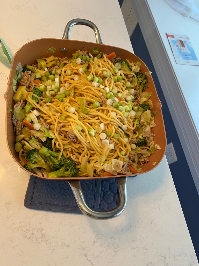 Made several new meals – discovered a great lo mein noodle from the local H Mart – that included Mongolian Beef and Ants on a Tree and two chicken based recipies: chicken scarpariello and chicken scallopini. Also made a Jewish Apple Cake: tasted pretty good but slightly overbaked. Directions said 70-90 minutes and removed it from the oven at 70 minutes. Will check at 65 minutes the next time. The Missus made an excellent cherry pie and the boy child made cheese ravioli from scratch.
