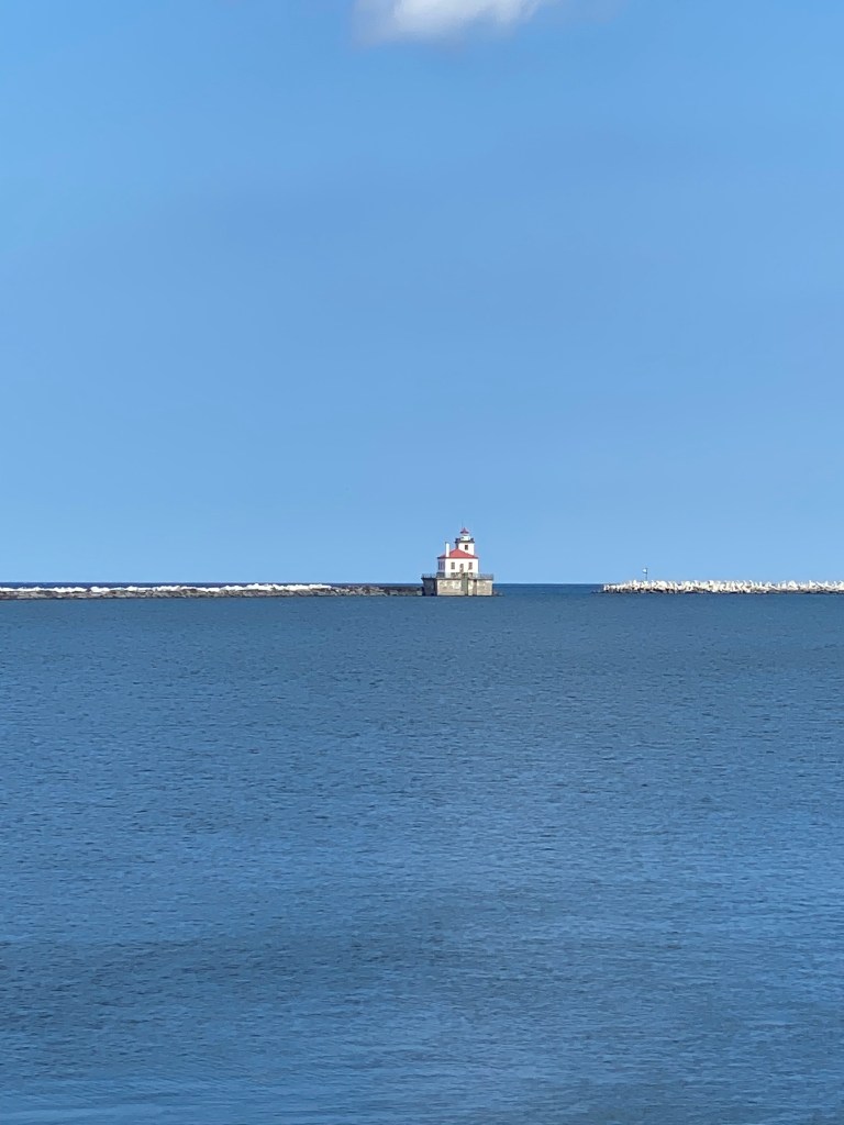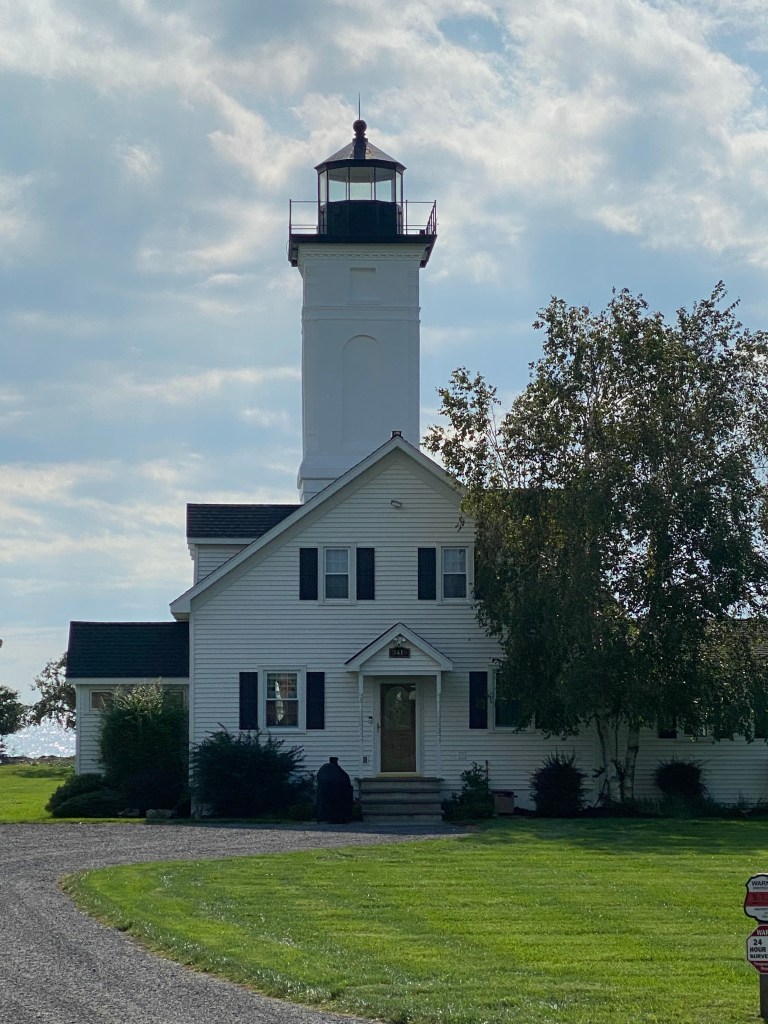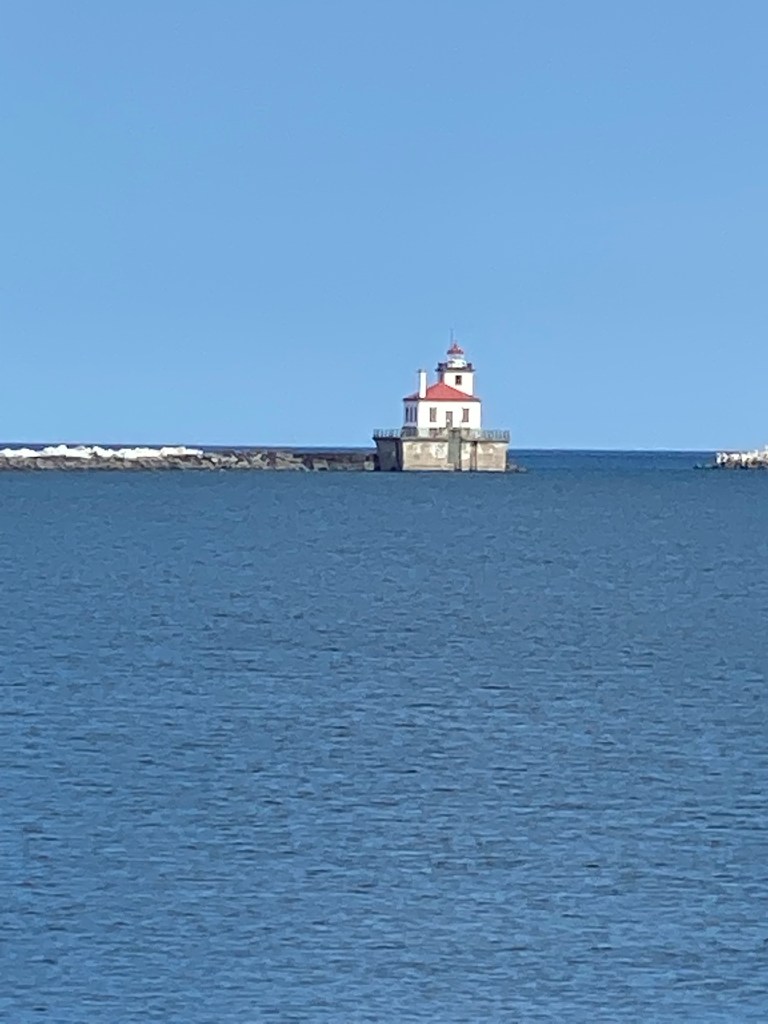 Next up, Braddock Point Lighthouse via the Lake Ontario State Parkway. No commercial vehicles are permitted and this time of year, it was not heavily traveled. All good since the first 8-9 miles are poorly maintained concrete which rendered the wide berm most unfriendly to bikes but the road wasn’t too bad. Much nicer ride when pavement switched to asphalt. Braddock Point is privately held, not open to the public but it listed on the Seaway trail posters, go figure. The original Light had an octagonal, 97-ft tower with 2 ½ story redbrick keeper’s quarters was constructed in 1896. Structural issues likely due to poor quality brick forced the USCG to deactivate the light in 1954. It’s been privately held ever since and a couple iterations of B&B’s. The tower was rebuilt in 1995 to height of 65 ft. The last B&B ceased operation in 2020. Several lighthouses, one isn’t included on the lighthouse list while another is private and not very accessible.