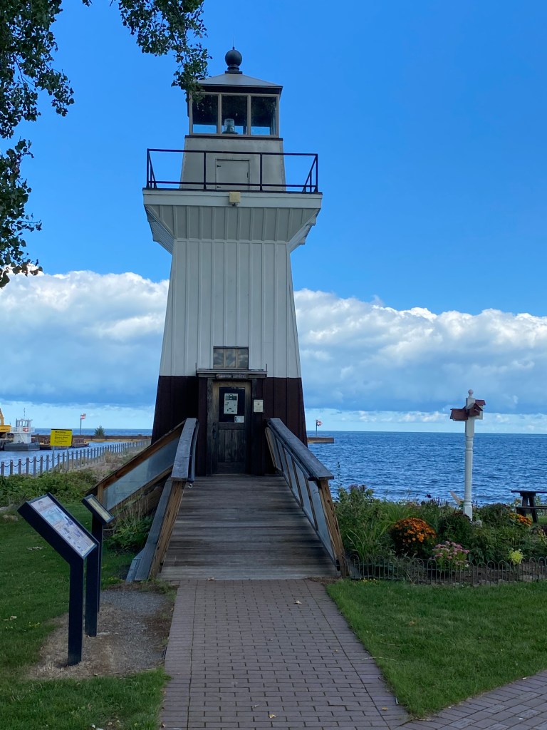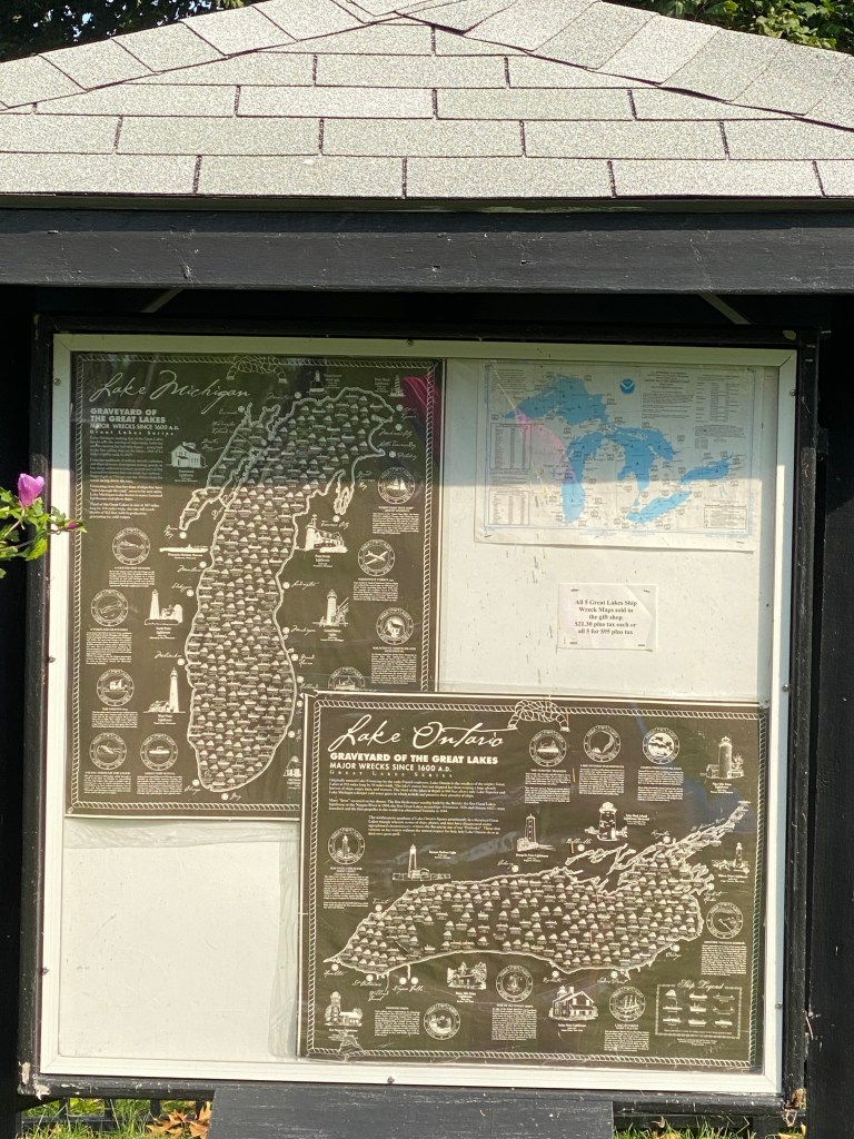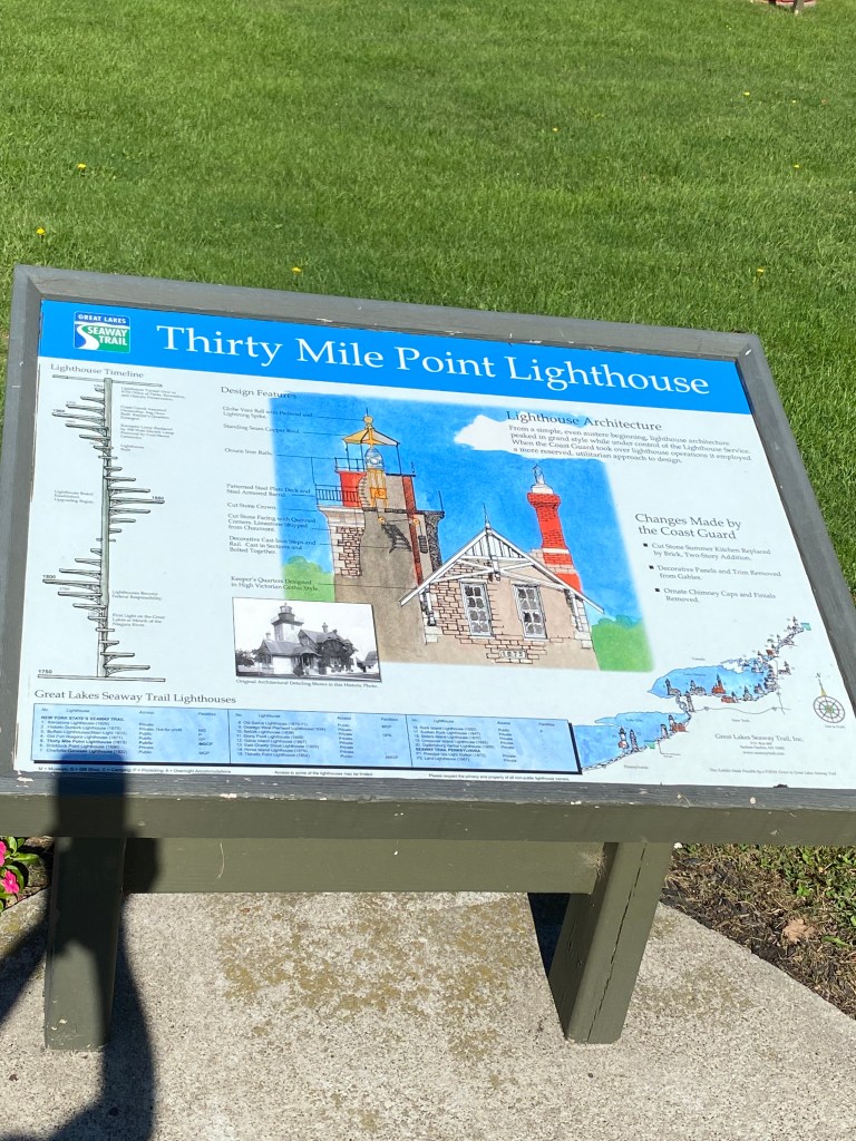 Oak Orchard lighthouse in Point Breeze isn’t included on the ‘official’ Seaway Trail historical markers but that was our next stop. It’s also a replica completed in 2010. The original 32-ft square pyramidal tower with a one-story keeper’s quarters was built in 1871. The Light was discontinued in 1914 and a storm in 1916 swept away the lighthouse and what remained of the pier after a storm 2 years earlier broke through the pier.