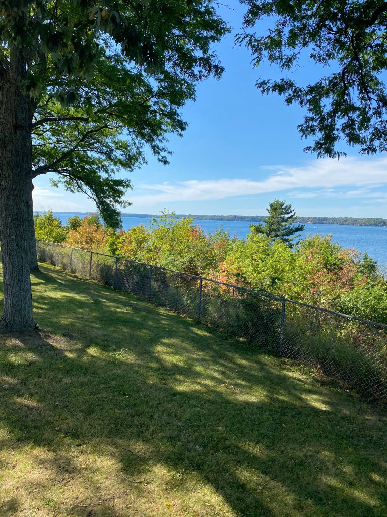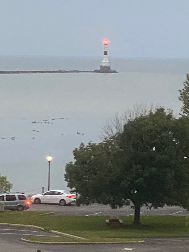 Tonight’s accommodations, the Inn at Gran View, was just outside Ogdensburg so saved myself 4 miles (will be added to tomorrow’s ride). Also received a refund of 500 feet of elevation from the RWGPS route metrics. Showered and off to the big city of just over 10,000 residents to pick up a new mini SD memory card for the GoPro, find Ogdensburg Light (another private one) and dinner at The Bayside Grill. Sat on the back deck overlooking the St. Lawrence trying to enjoy the cool, brisk breeze, and the dinner – house salad, shrimp scampi, dinner bread, Yuengling draft, and water.
