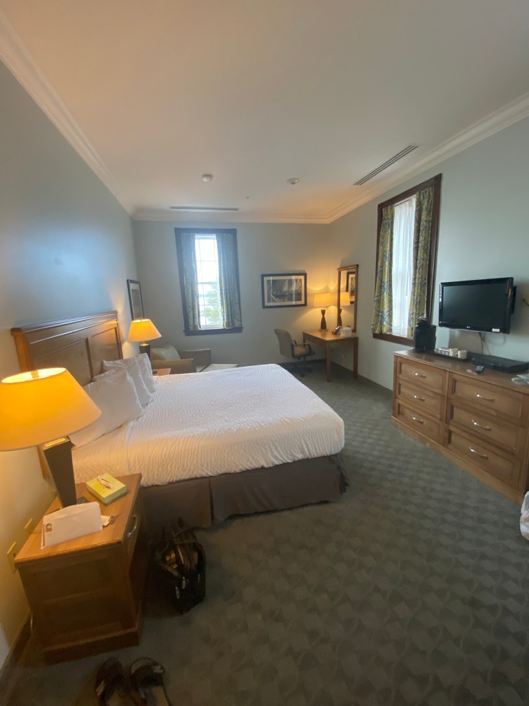 Drove to Montpelier taking the ferry from Plattsburgh, NY to Grand Isle, VT, the northernmost crossing on Lake Champlain. Passed through the final wine trail: Adirondack Coast Wine Trail, established in 2013 consisting of 3 wineries in St. Lawrence County. Lodging accommodations were at the Hilton Tapestry in downtown. Walked to dinner at Positive Pi. Had to wait 30 minutes to be seated apparently due to being short staffed. Excellent food and service once seated though: house salad, creamy pesto pasta with chicken, Vermont Scarlet draft. The iPhone photo doesn’t do justice as it turned the pesto sauce to a sickly shade of green. It really didn’t look like that. As we walked the downtown area, nearly every store had a help wanted sign posted in the window. Interestingly, the response to Covid varied from store to store. Many stated masks were required upon entry regardless of vaccination status. Others encouraged masks for those vaccinated but required them for the unvaccinated. We thought we had identified our breakfast stop for the next morning, but it wasn’t meant to be. More on that tomorrow.