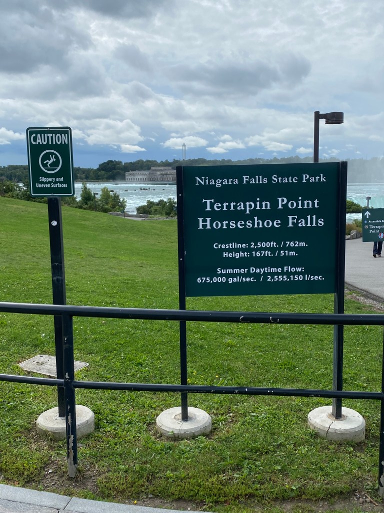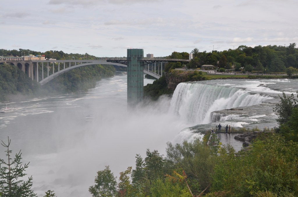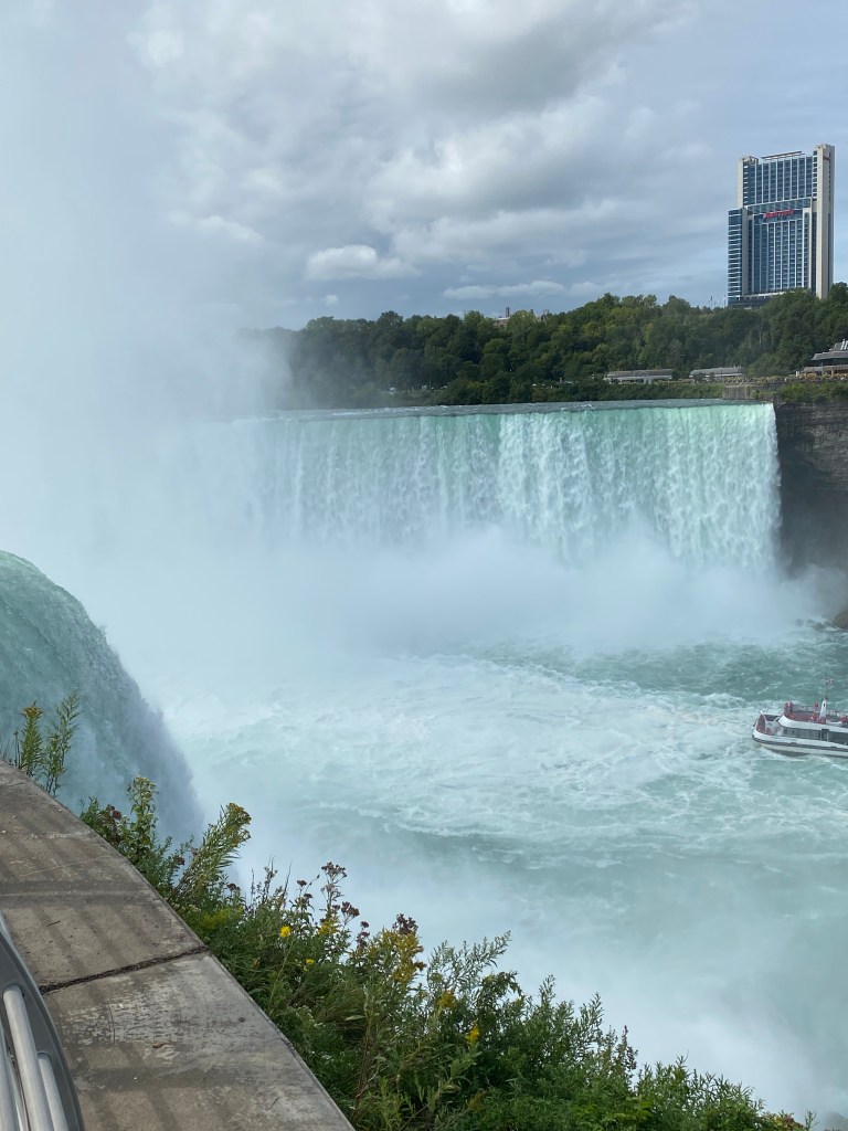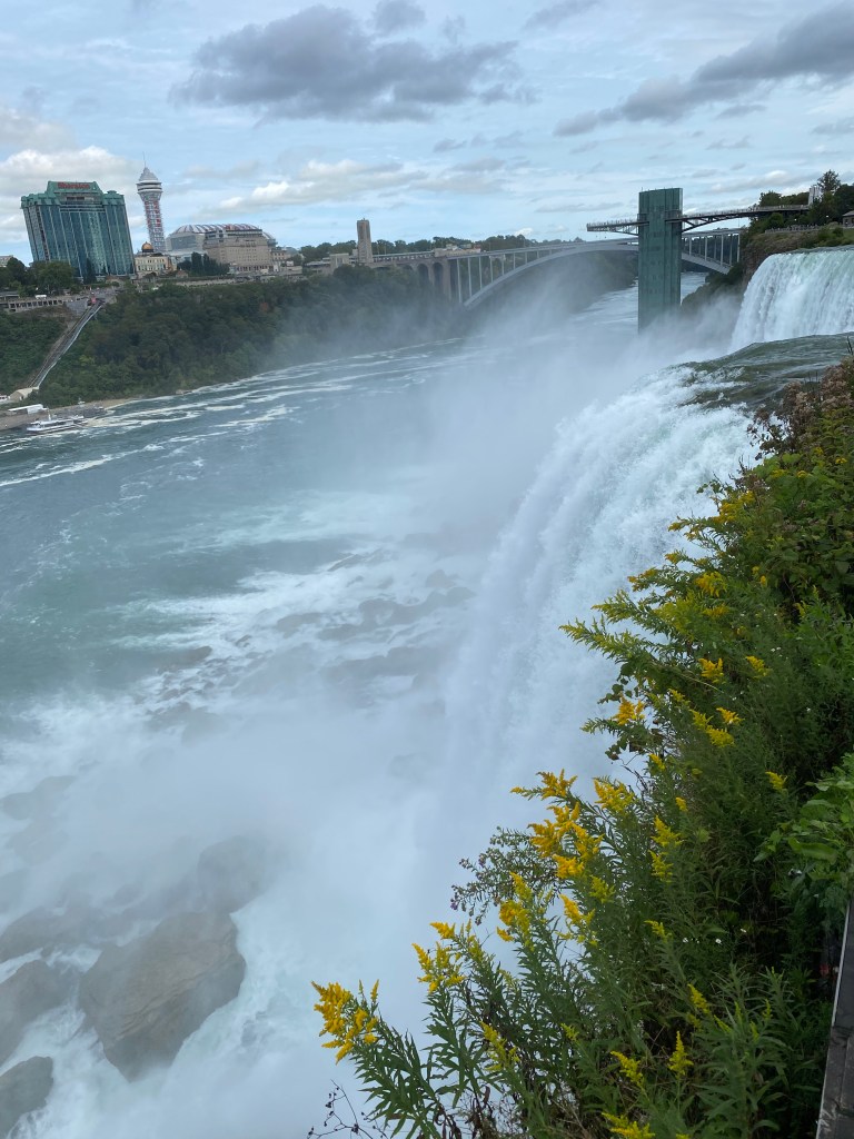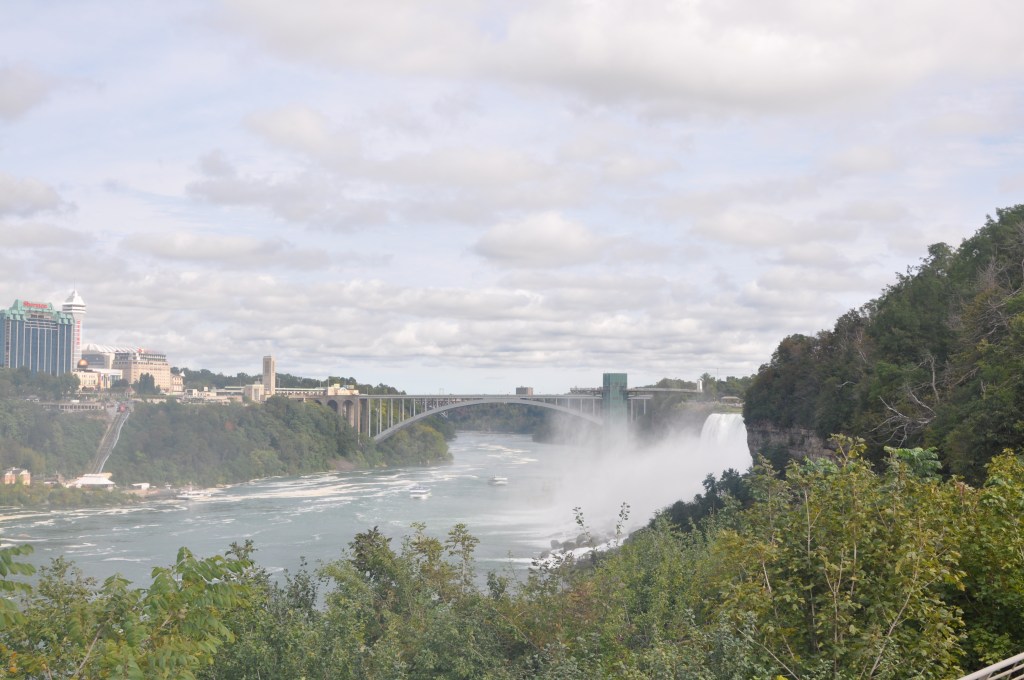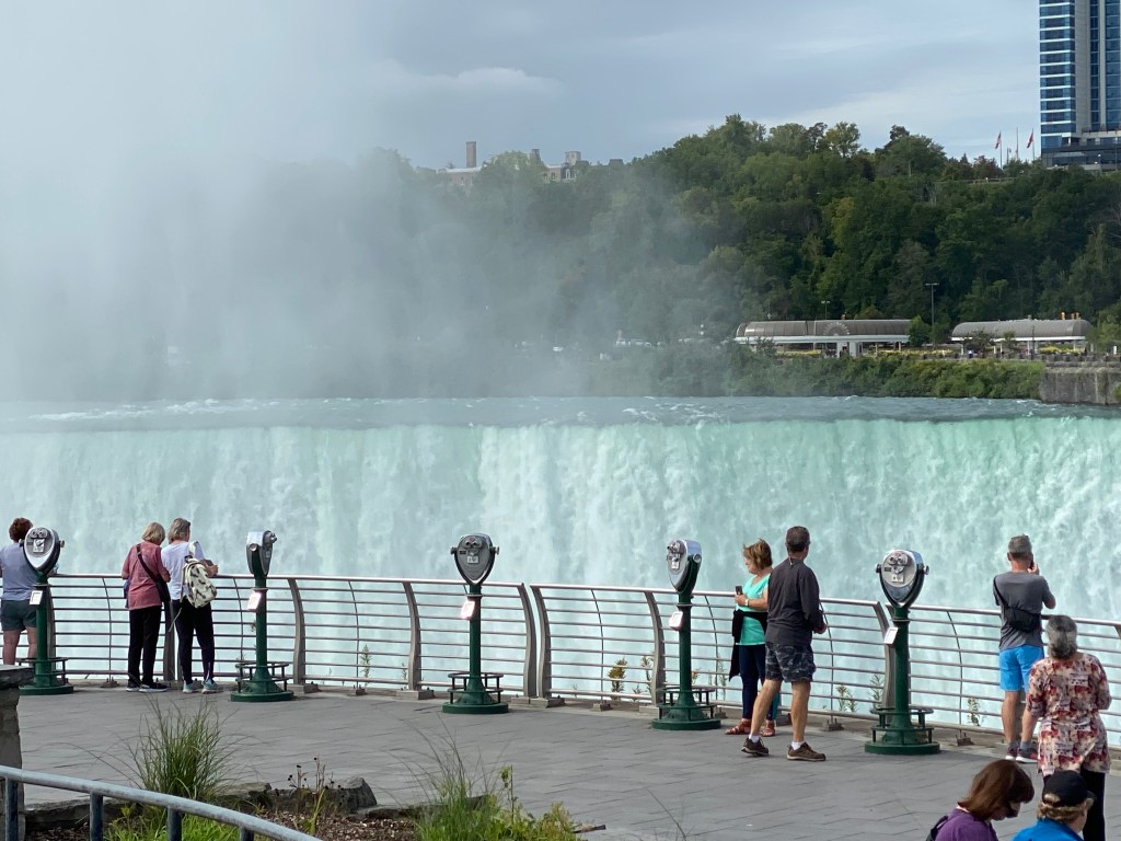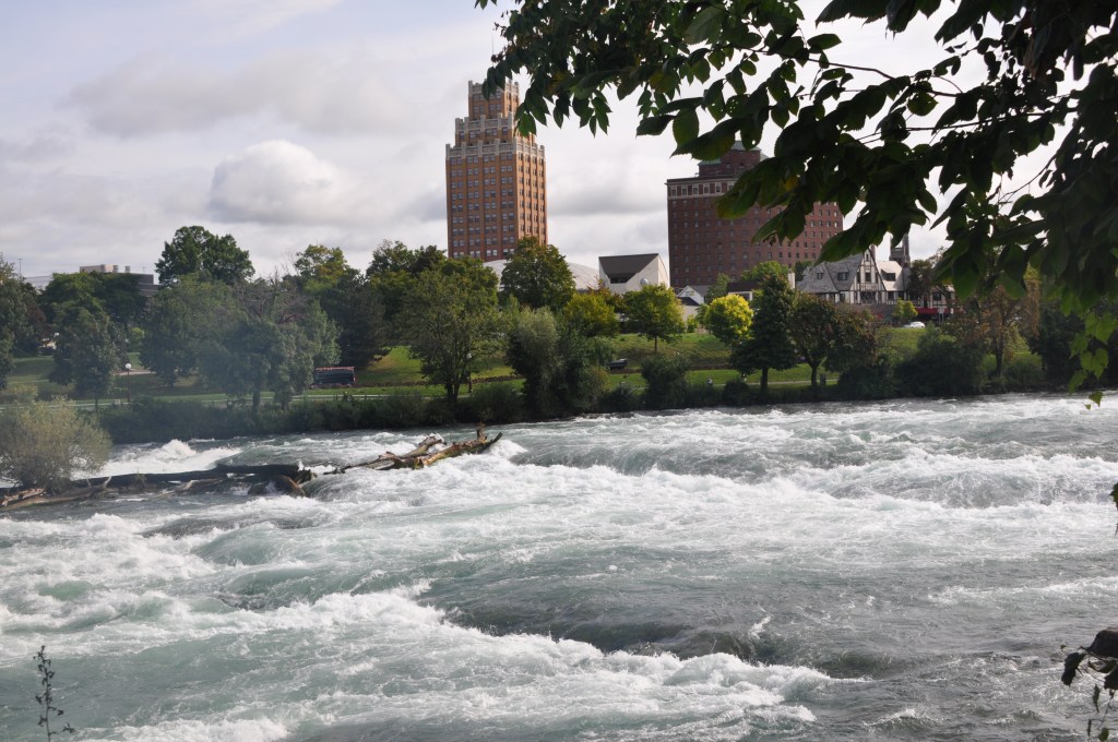 Relaxed morning with late rise (for those able to sleep) as breakfast was downstairs at 0830. Mostly standard Hampton Inn fare: waffle, scrambled eggs, kielbasa, cereal (Cheerios and Raisin Bran) French toast sticks, water, orange juice, and maybe one whole well-traveled banana. Actually peeled two but bruising was rather severe on one of them. Requested a late check-out and was granted 1:00 pm but really wanted 2:00. Still, better than 11:00. Spent the morning playing tourist at Niagara Falls. Walked to see the American rapids and falls, Bridal and Veil, then the star of the show, Horseshoe Falls. Everyone says the view is better from the Canadian side and I’m sure it is. Someday, maybe. The amount of water pouring over is 675,000 gal/sec. Amazing that the river never runs dry! It was a lot of walking for the parental units so took the trolley back to the visitor center and parking lot. None of us remembered walking as much when the entire family came to Niagara nearly 40 years ago. All any of us could remember was getting soaked (and enjoying none of it) on Maid of the Mist. Back to the hotel to pack up the vehicle and get ready for the shortest ride of the week. Even though approved for late check-out, still had to return to the desk to have our key cards reprogrammed so we could enter our rooms.