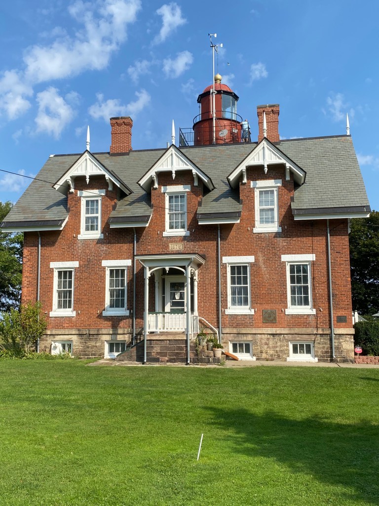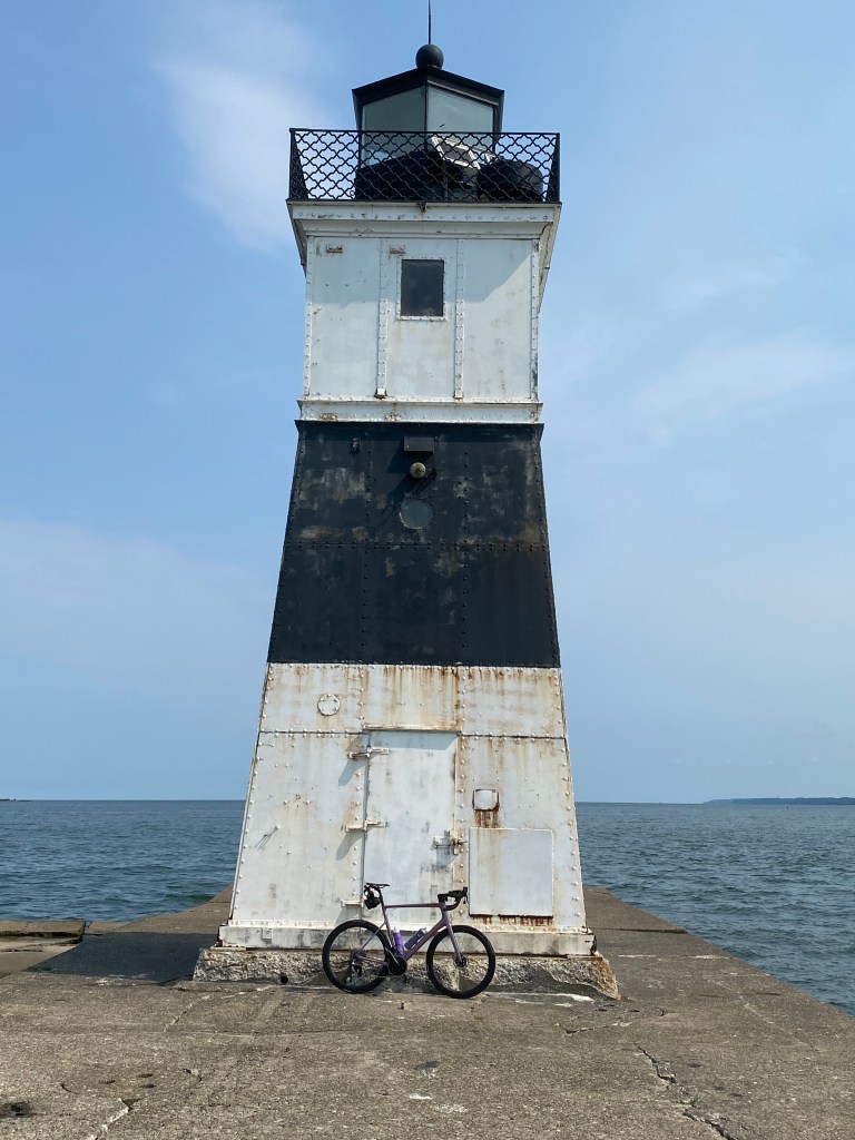 Cycling conditions were rather favorable; overcast with a slight cross/tail wind. Covered the initial 30 miles at a 22.5 mph pace while mostly maintaining an upper Z2 effort. Vineyards dominated the scenery for the first 20 miles with some corn fields thrown in here and there for a little variety. There was rarely any indication as to ownership, farm or winery associated with the acres of grapevines. Interstate 90 seemed to be the demarcation for fertile soil because there were hardly any vines south of I-90 which was only half a mile south of the Seaway Trail. The few vines viewed didn’t seem as healthy as those along the Trail. Unlike Day 1, views of Lake Erie were quite prevalent between the tree line on the left. The color was reminiscent of Caribbean or Florida panhandle beaches: teal or very light green close to shore then progressively darker blue as further out. First stop was about the 10-mile mark, the Barcelona (NY) Lighthouse also known as the Portland Harbor Light in Westfield, NY. Finished in 1829, the tower is only 40 ft tall, but it was the first natural gas lighthouse in the country. It was undergoing some level of renovation or cleaning, so the photos weren’t ideal. Next to the harbor was a single row of grape vines that were available to visitors for picking. Surprisingly, the row contained several varieties and colors of grapes. The view of the lake was simply stunning. Again, not the Lake Erie I’m familiar with. The next stop was 20 miles east at the Dunkirk Lighthouse. The original lighthouse was established in 1827 but experienced erosion problems which led to a 61-foot stone tower and Victorian residence being constructed in 1875. The first shot of the War of 1812 was fired near the west bank of the lighthouse.