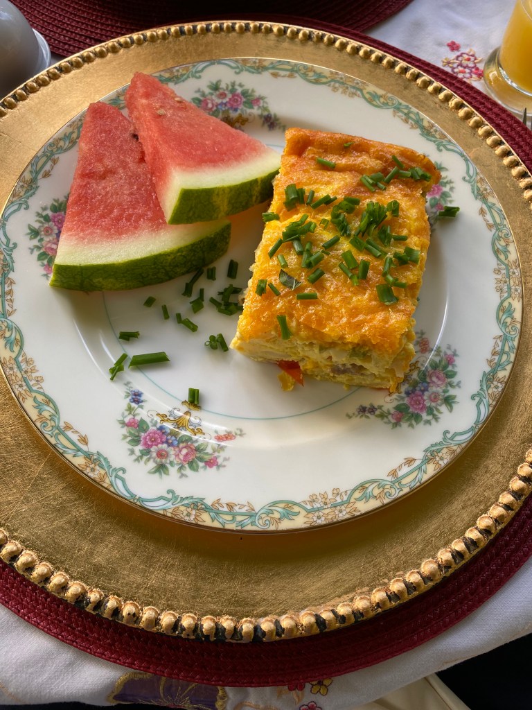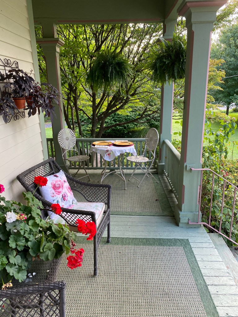 Later start than preferred because breakfasts at B&B’s are always a production. It was good, just don’t be in a hurry because that only leads to frustration. Guess you’re not supposed to have strict plans when you stay at B&Bs. Oh, well. It’s good food so just enjoy it. Started with a fruit (strawberries, blueberries, and granola) parfait. Won’t quibble about differences between parfait vs yogurt topping as yogurt normally isn’t a parfait ingredient. Applesauce and cinnamon muffin was next. Delicious, just needed to be bigger. Main course was egg casserole or quiche (red peppers and potatoes) with watermelon wedges. We sat on the patio next to a fruit-bearing tree which turned out to be a dogwood. Who knew? Kousa or Asian dogwood produces a berry in the fall resembling a raspberry but much bigger and with a tougher skin.