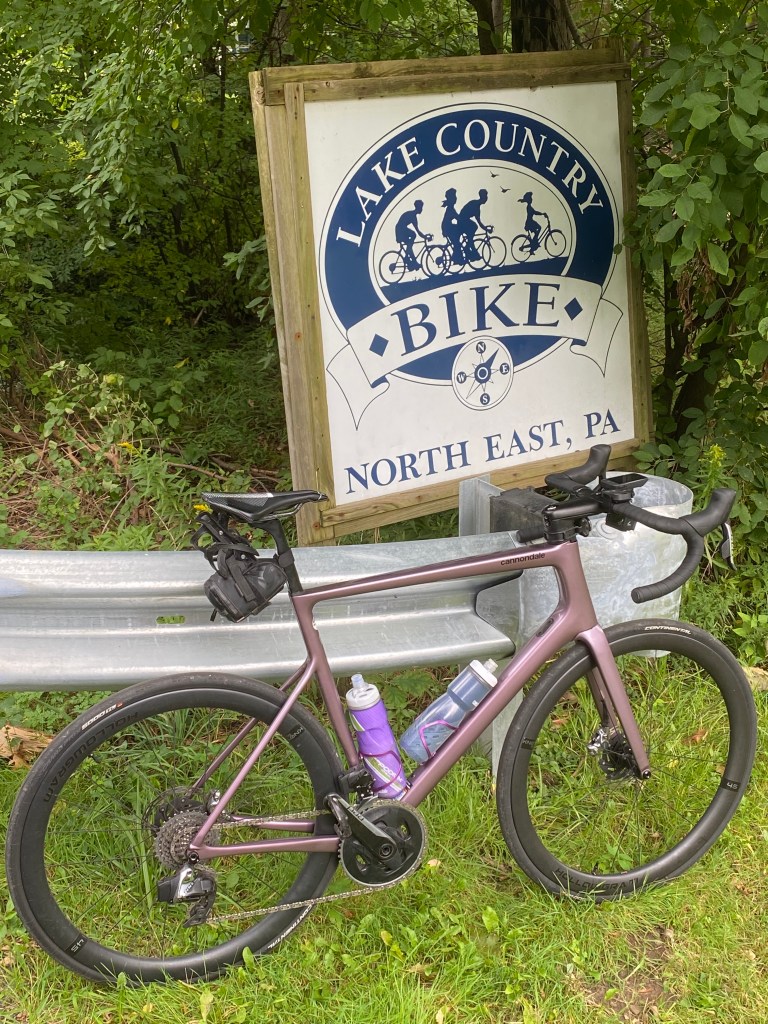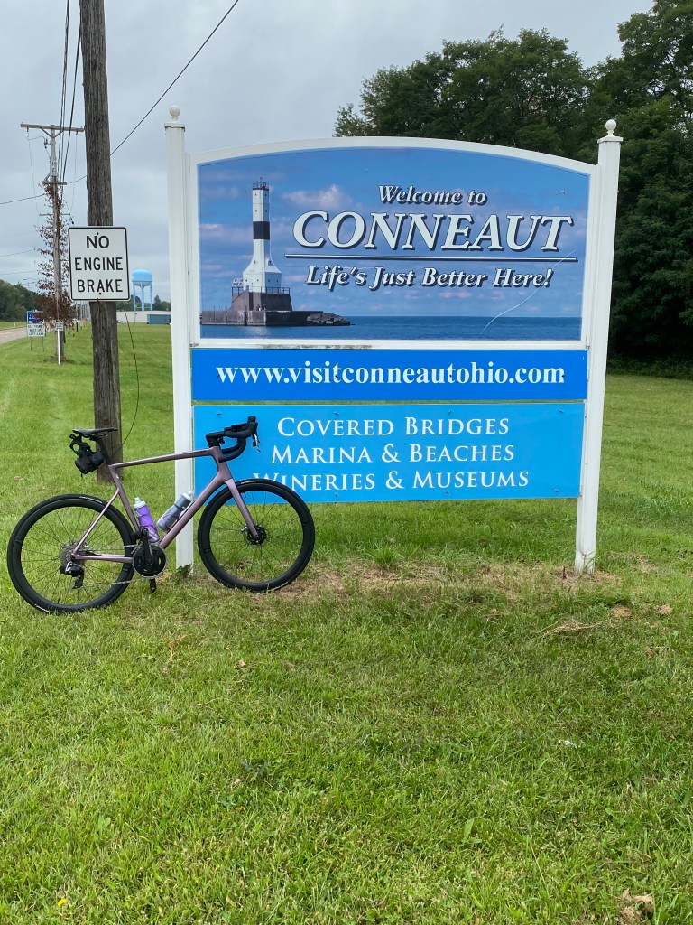 Back on the road to complete cycling in three states on one ride. Absolutely astounded by the amount of vineyards as one approaches North East, PA and extending to Ripley, NY. Learned that this area is the largest and oldest Concord grape-growing region in the world. Finished the last ~ 10 miles accompanied by Sis as she also brought her bike to squeeze in a few rides around her arduous SAG duties. Lodging was at the Pines Motel on Lake Erie. Not exactly a posh hotel but it was a place to crash for the night.