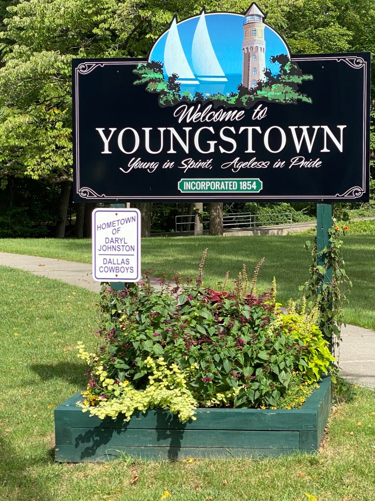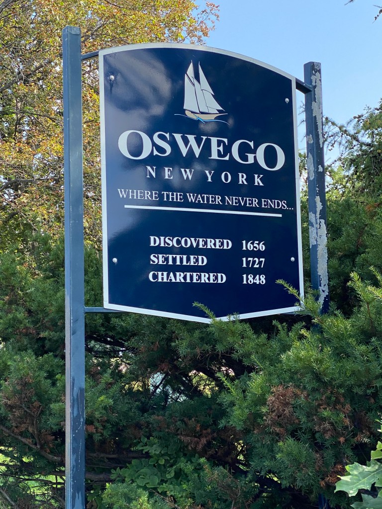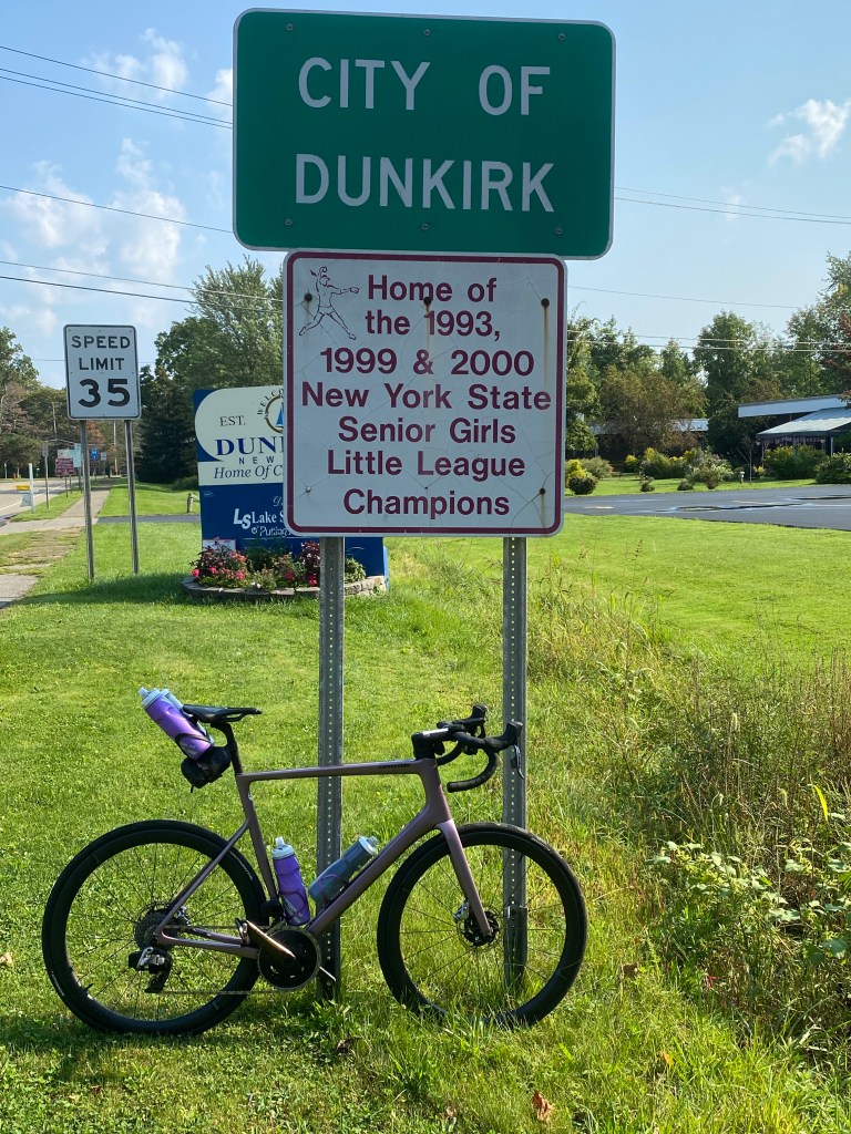 Riding through Rochester not nearly as congested as expected; interesting that town/city/village signage varies wildly and seems completely random. Sometimes very picturesque signs announce entrance to small towns while other times a plain brown or blue sign with white letters declares the name. Often wonder where the slogan originated as some are catchy, others make you scratch your head. So far, the bigger towns (Buffalo and Rochester) or cities didn’t have any welcoming signs, at least on my route.
