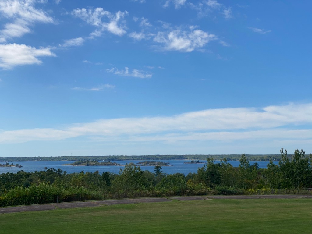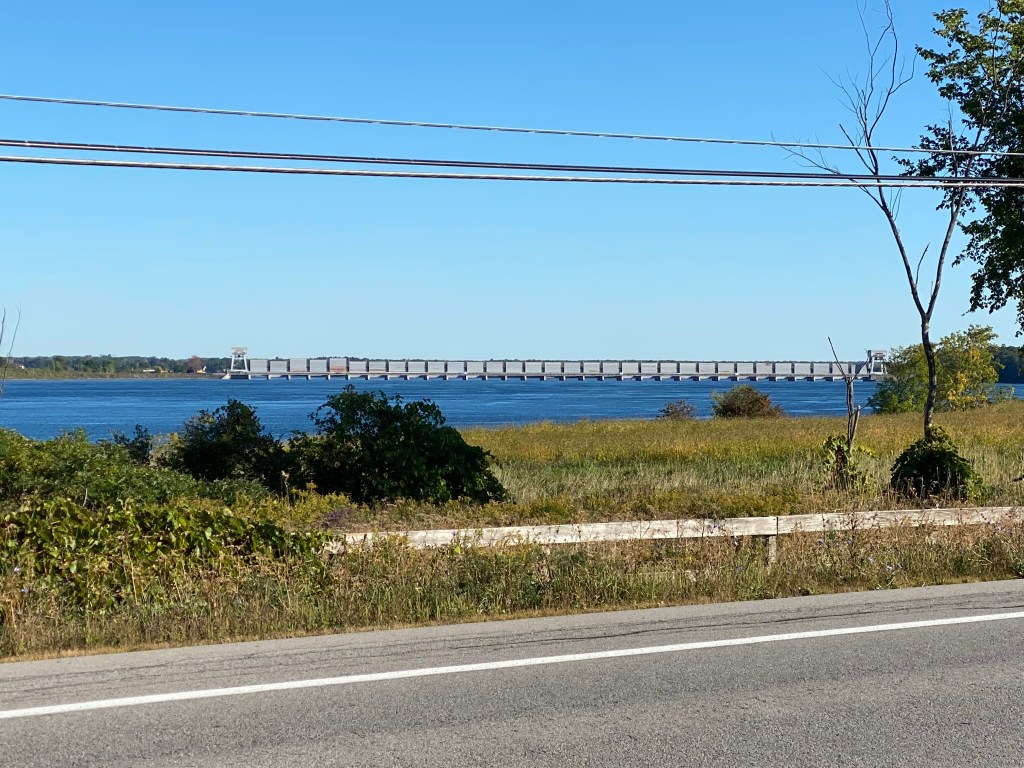Would bid adieu to Lake Ontario as the route would curve around the eastern shore then parallel the St Lawrence Seaway. Weather was not very accommodating today – a few drops of rain after breakfast that never materialized but wind was a constant head/cross the entire day. End result was slowest, in terms of average speed, day of the week. Coolest day so far as well. Vineyards and orchards were replaced by cornfields. Eventually little agricultural activity – forests. St Lawrence was not visible for long stretches at a time. When it was visible, it had a slightly lighter but not pale shade of blue compared to Lake Ontario.