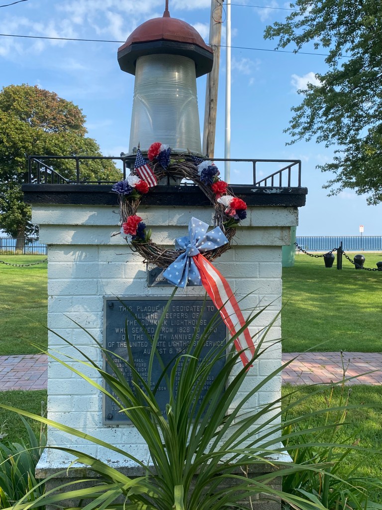 Once again, passed Sis on her end of day ride but this time it was much closer to our final destination, Olcott, NY, population < 1300. She turned around to give me the car keys then headed west again to complete her ride. The ride ended at the Olcott Beach Lighthouse (Replica) in Olcott Harbor on Lake Ontario at the mouth of Eighteen Mile Creek. The original light was 32.5 feet tall and completed in 1873. Dismantled in 1963, a group of local citizens known as the Olcott Lighthouse Society, raised $6,000 and work began on a full-scale reproduction in 2003. No blueprints or architectural drawings were available so historic photographs were used to develop the plans.