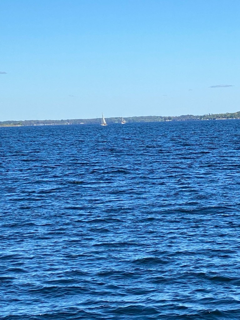 Had Sis motopace for a bit to block stiff head wind for a couple miles after leaving Vincent Bay. Never found Rock Island Lighthouse State Park but able to snap a photo of the Lighthouse thanks to a local who also cycles guided me to the best spot viewing spot. Still haven’t seen many other road bikes, could count them on one hand and still have fingers to spare, the entire trip. Caught up with Sis at one of the many parking lots along NY State Route 12. This one overlooked St Lawrence. Exchanged stories since our departure from Vincent Bay before finishing up last stretch. Sis finally found an open winery, 1000 Islands Winery, part of the 1000 Islands Wine Trail. Unheard of in VA wine country but a flight of 6 was on $5. Only saw one small vineyard but seemed to be more wineries and a few distilleries in a 15-mile stretch than anywhere along the Trail to include the Concord grape region. Don’t know where the grapes are coming from.