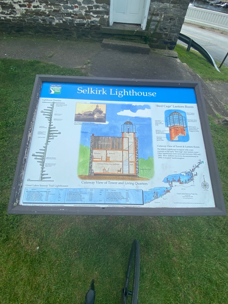 First 40 miles nothing but rollers with a few longer efforts with pitches topping 8%. RWGPS detailed 3402’ and reached 2250’ at 40. Not convinced the route data was correct? Why? Is my Roam overestimating? Why can 3 different people all using Roams riding same route end up with different elevation? Body was expressing itself from very beginning – thirsty. Thought I had consumed sufficient fluids yesterday. Apparently not. Consumed nearly 3 bottles by the Oswego stop (40 miles). Temps were mid 70s but drank for more than usual for that distance. Refilled all 4 plus drank a G2 before rolling. Tail wind for a bit – really nice, until nearly 2 mile section of milled road. Selkirk Lighthouse (Salmon River) next stop at mile 60. Name actually makes sense as salmon is stocked yearly chinook, Coho, two types of strain steelhead, and Atlantic. Next stop a private lighthouse in Henderson Bay which added about 11 miles to today’s distance. The private light and attached house are at the end of a dead-end road. Some of the roads leading to the Light were part of a triathlon course as run and bike directions were still visible. Minor rant: SiS gels that don’t open as intended make a mess on kit and bike. Not a fan. Home stretch to Sackets Harbor, population ~ 1600, ended up with 500 more feet of climbing than RWGPS route indicated. Unable to see the local lighthouse as it’s actually on Horse Island and not visible from the mainland. A local at the Barracks stated the best way to see it is to kayak to the island. Unfortunately, that’s nearly a 60-min one way trip: didn’t have time or kayak to make that happen. Lodging at Marina Inn & Suites on Madison Barracks. The Barracks were constructed due to area’s strategic importance during the War of 1812. Upon entering my room, lo and behold but what was found? Two cookies and 2 bottles of water. Exactly the reward needed. Dinner at Good Fellas – house salad, bread, chicken riggies (baked rigatoni with marinara sauce and chicken), and 1812 draft.