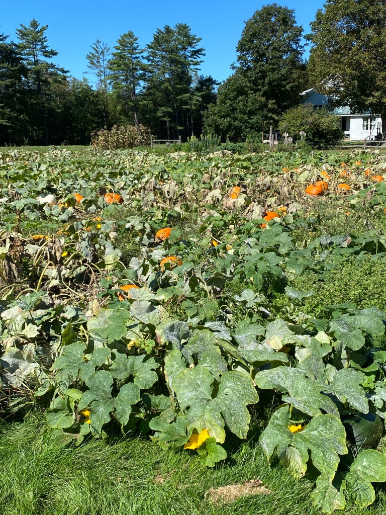 The route started with nearly a mile descent on well-packed VT gravel – dirt really. Turned left onto US 5 and paralleled the Possum River back through St Johnsbury then headed southeast. Road was gently rolling until the first climb, just short of 2 miles with an average grade of 4.5%. Crossed over the Connecticut River into New Hampshire, made a sharp right hand turn onto State Route 135 (Connecticut River Byway) and would keep the river on the right down to Woodsville. No signage evident to announce entry into the Granite State. Second climb of note was 1.3 miles at a misleading 3.5% average. Misleading because there’s a quarter mile false plateau and short descent in the middle but the final half mile averages over 6.5%. Awesome scenery along the way – every direction was picture worthy. After seeing pumpkins at road side stands and markets for the past 3 days, finally saw a pumpkin patch. Ended the ride in Woodsville at the Haverhill-Bath covered bridge to take pictorial evidence of a NH ride.